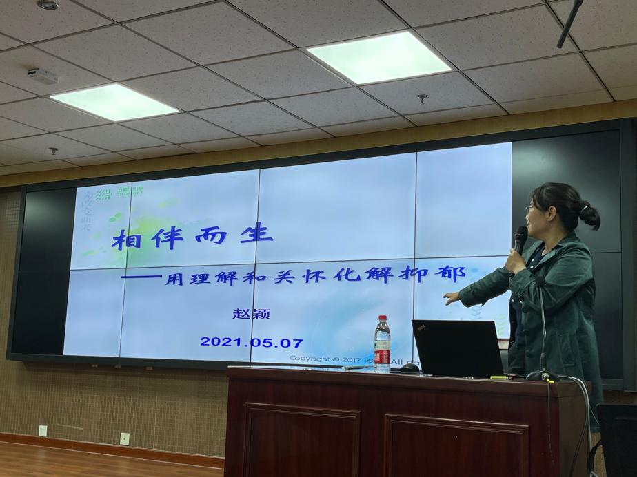 校医院副主任医师赵颖作了题为“相伴而生——用理解和关怀化解抑郁”的报告。讲座由H视频