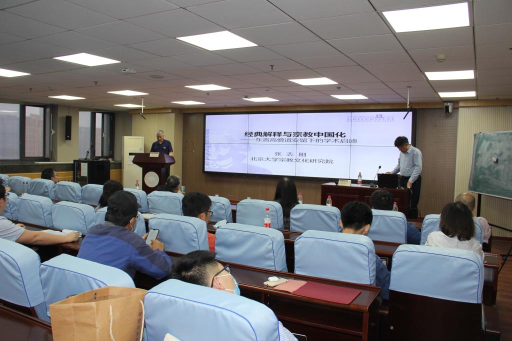 讲座伊始,张志刚以“宗教中国化”为例指出了“新的见地”的重要性。他指出,在中外思想史或学术史上,可以感悟到这样一种现象:一种新的见地,往往能为人们开辟出新的视野,拓展出新的思路,展现新的前程。近几年受到各界高度关注的“宗教中国化”,就“义理”或基础理论意义而言,便可作如是观,因为这一新见解能启发我们,通过“重读中国宗教史”来“续写中国宗教史”。