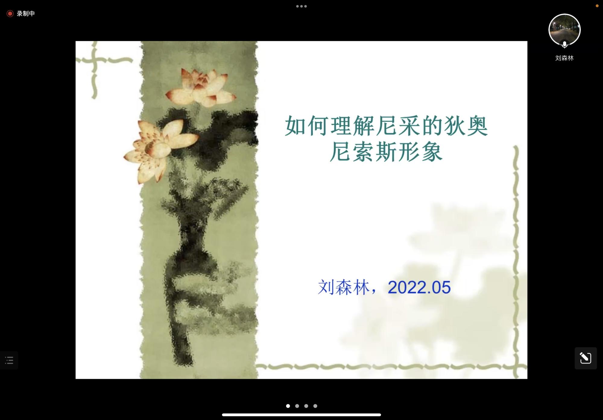 吴童立在主持时指出,刘森林教授对狄奥尼索斯的形象与虚无主义的来龙去脉梳理的非常清晰,在集中隔离和抗击疫情的背景下,有创造力与有担当情怀的酒神精神会为我们带来启发。希望同学们能够在隔离期间常读常思,安然度过、安然归来。