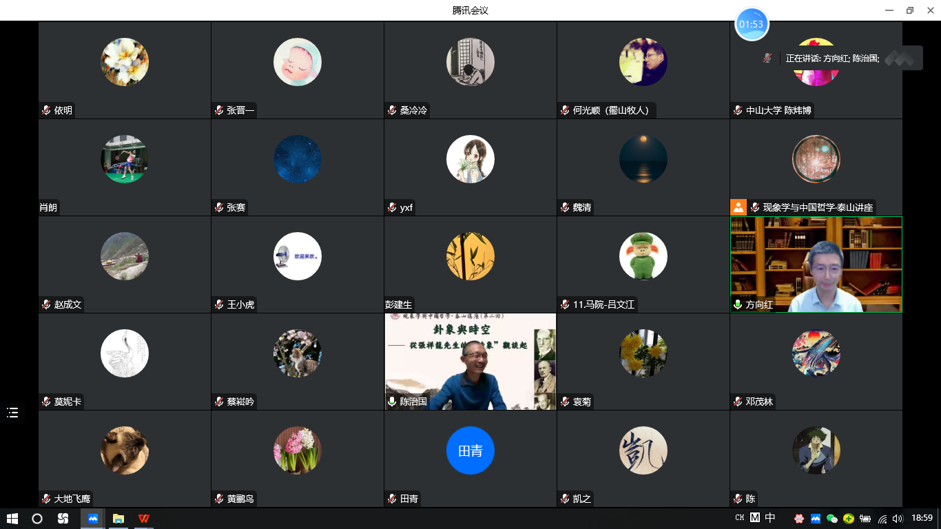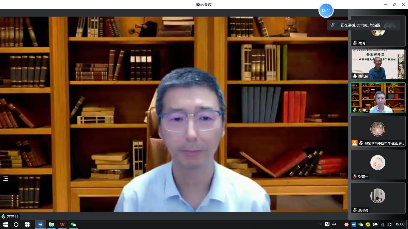 顺利举办“现象学与中国哲学”泰山讲座(第二回)。本次讲座继续采取线上视频会议的形式,由近百名专家学者和师生在线参与。本次讲座主讲人为中山大学哲学系的方向红教授,报告题目是“卦象与时空—— 从张祥龙先生的‘时象’观谈起”。讲座由H视频