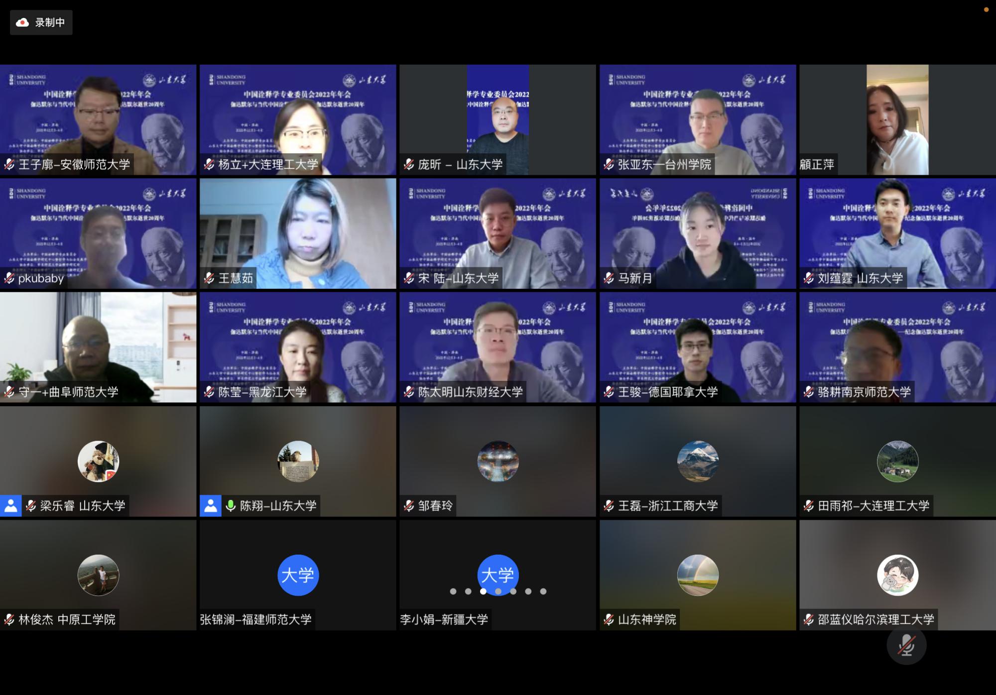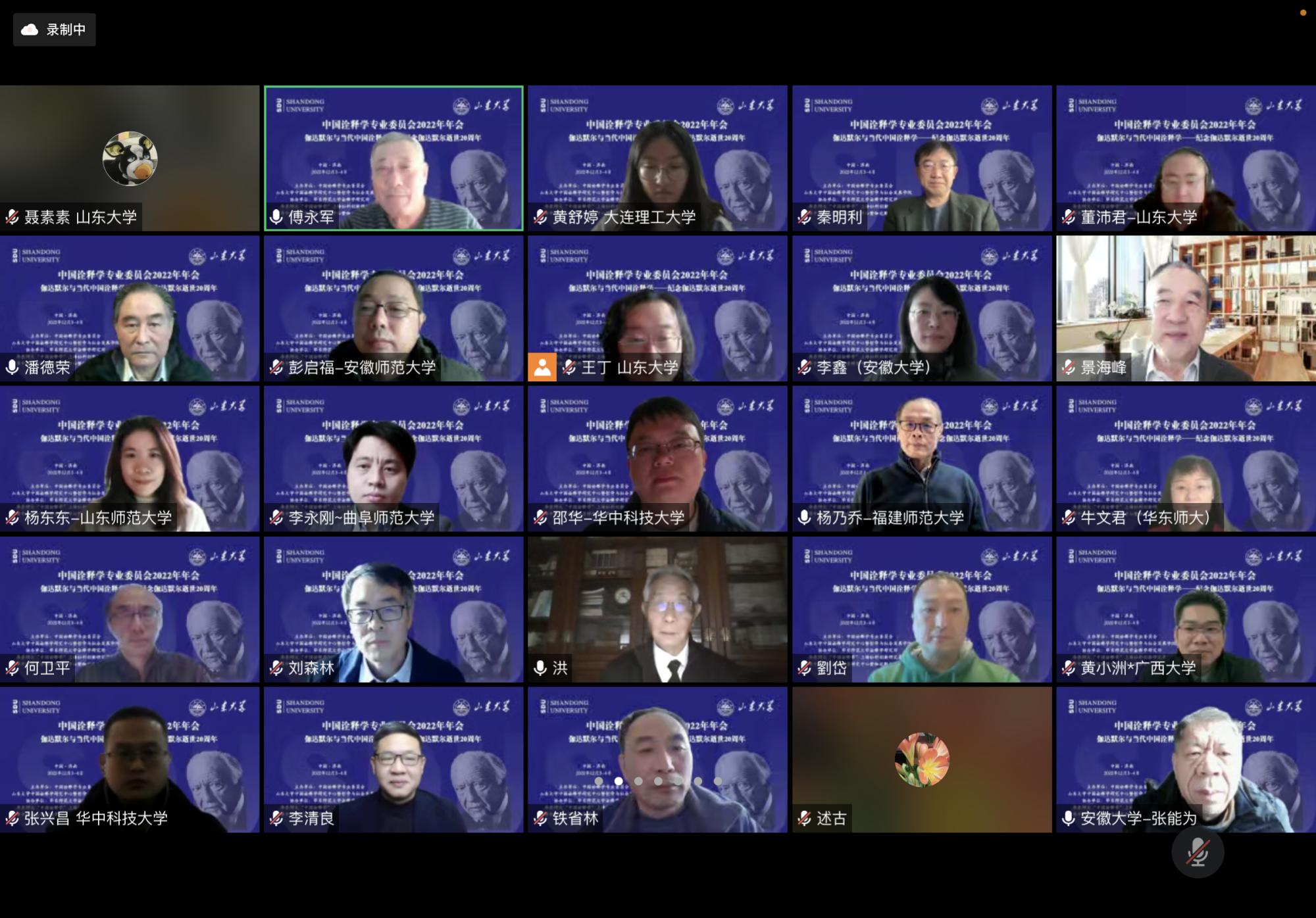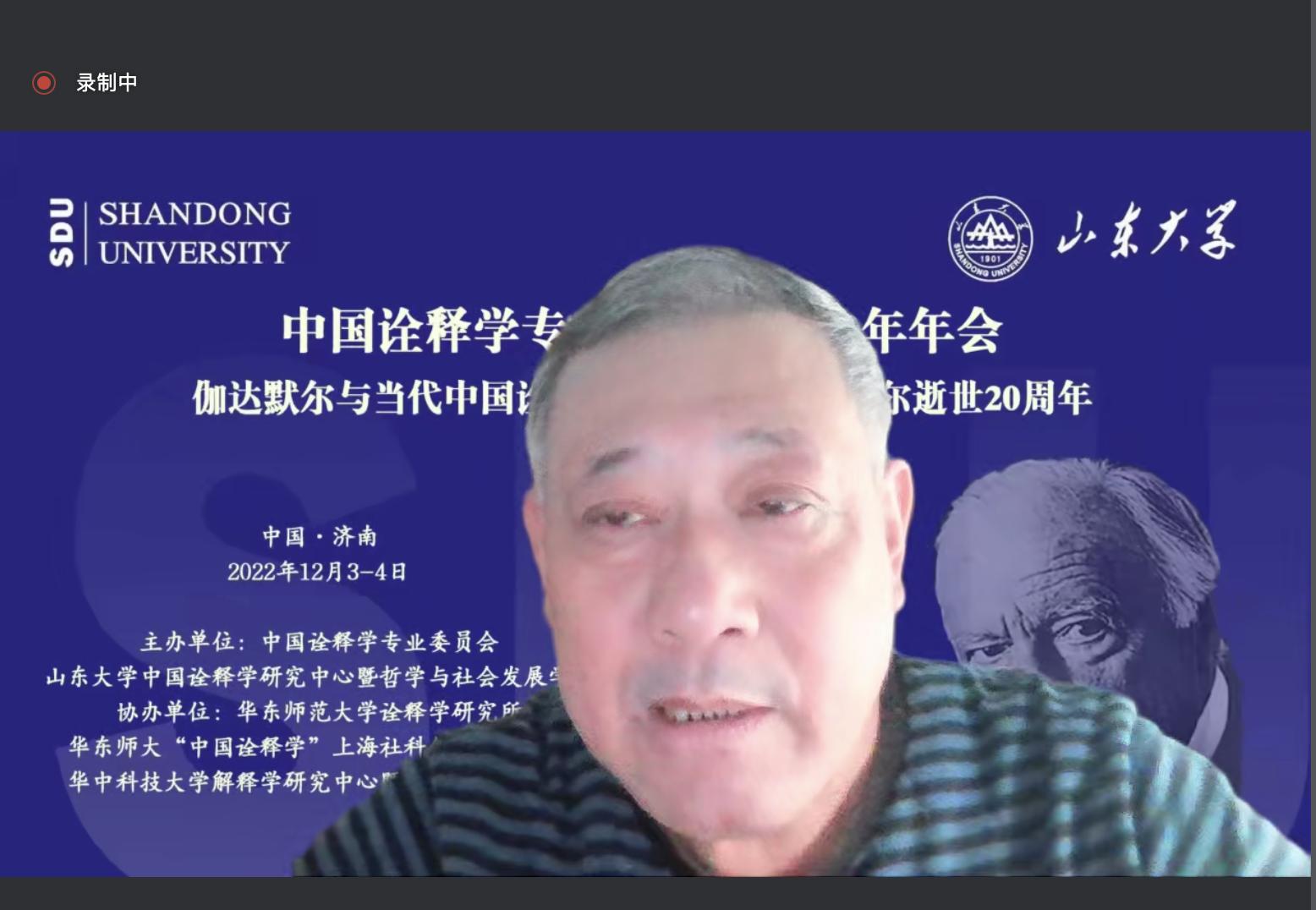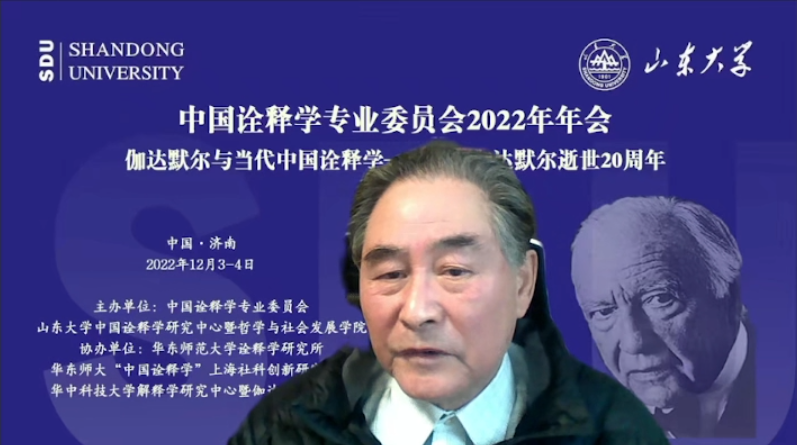 2022年12月3日至4日,由中国诠释学专业委员会、H视频 中国诠释学研究中心、H视频 主办,华东师范大学诠释学研究所、华东师大“中国诠释学”上海社科创新研究基地、华中科技大学解释学研究中心暨伽达默尔文献馆协办的“中国诠释学专业委员会2022学术年会在线上成功举行。今年是著名哲学家伽达默尔逝世20周年,中国诠释学专业委员会以“伽达默尔与当代中国诠释学”会议主题,纪念这位享誉世界的诠释学大师,同时讨论诠释学中国话语体系的创造性建构取得的成果。来自北京大学、清华大学、H视频 、复旦大学、华中科技大学、中山大学、华东师范大学、中国社科院大学、大连理工大学、湖南大学、安徽大学、黑龙江大学、南京师范大学、深圳大学、山东师范大学、广西大学、曲阜师范大学、安徽师范大学、山东财经大学、南方医科大学、华东理工大学、山东省委党校、台州学院、韶关学院等近30多所高校及科研机构的学者出席了会议,就伽达默尔与诠释学的未来、中国诠释学的创造性构建、中国诠释学的多元探索、西方诠释学的多维发展、艺术的诠释学向度与现代性、诠释学与实践智慧、中国经典诠释之审思、诠释学的新视域等话题展开了为期两天的热烈而深入的讨论,全景式展现了中国学术界诠释学研究、特别是诠释学中国化所取得的最新成果。