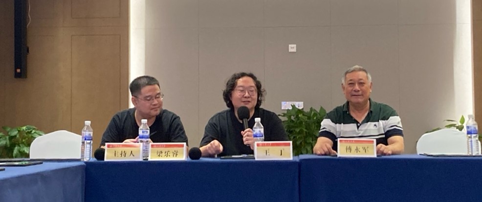 王丁教授主持,两位主题报告人分别是北京社会科学院经典阐释学研究中心洪汉鼎教授和中国社会科学院大学阐释学高等研究院张江教授。洪汉鼎教授报告的题目是《诠释学解释概念发展的三阶段——再论诠释学在当代的意义》。在报告中,洪汉鼎教授明确地划分了诠释学概念发展变化的三个阶段,即最初的诠释学聚焦于宗教文本的理解和解释之“阐释”(Auslegung);启蒙运动期间诠释学转向了强调理性和逻辑分析的的“说明”(Erklärung);现代当诠释学在更高层次上回归到“阐释”概念。张江教授包裹的题目是《汉字“阐”与“诠”的区别》。张江教授从汉字字源、字形出发,围绕“义”与“意”这组中心概念,结合“阐”与“诠”、“解”、 “理”与“性”、“通”与“达”、“通”和“达”、“衍”等多组中国阐释学的基石性概念,深入浅出地分享了自身对阐释学体系建构的成熟思想。
