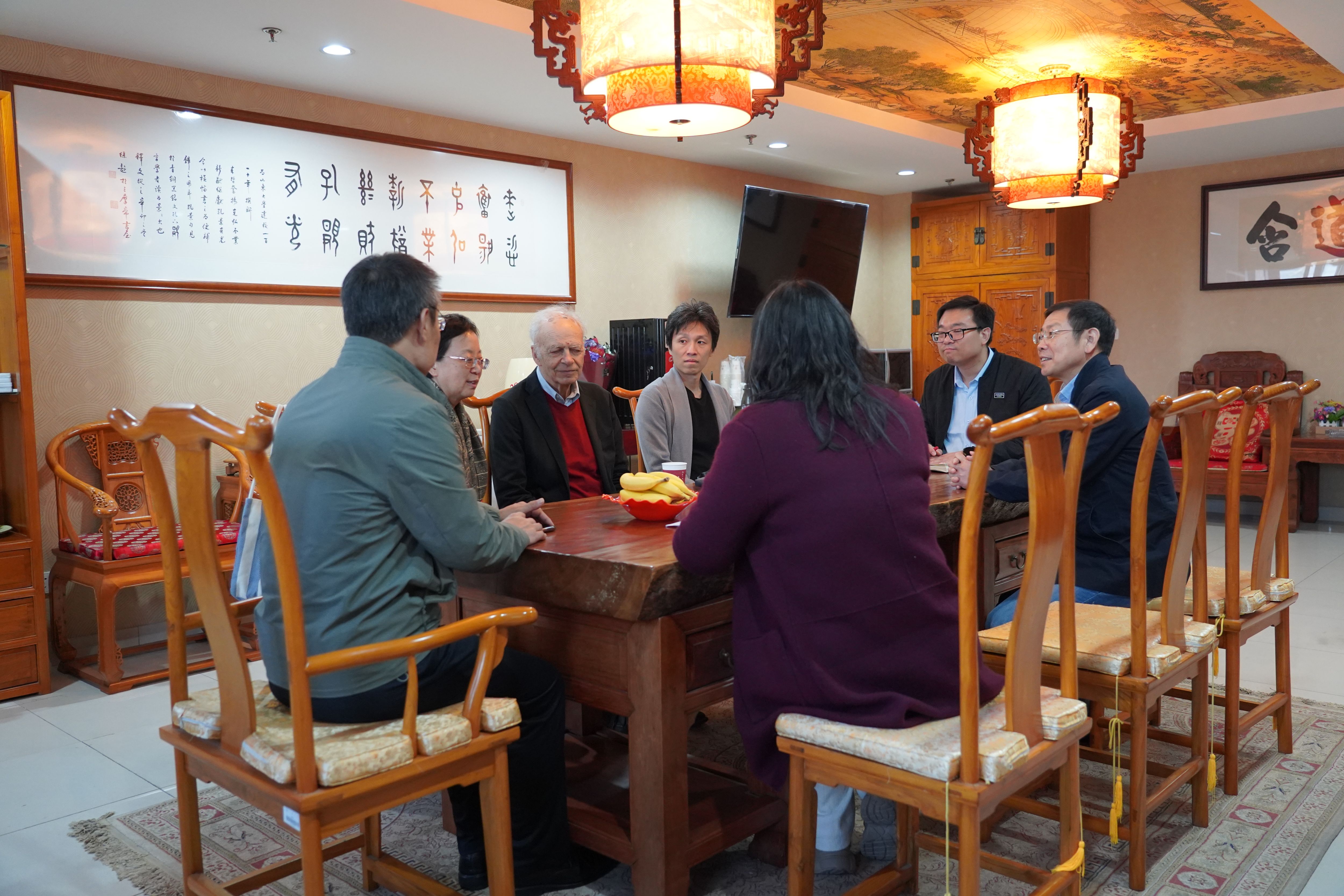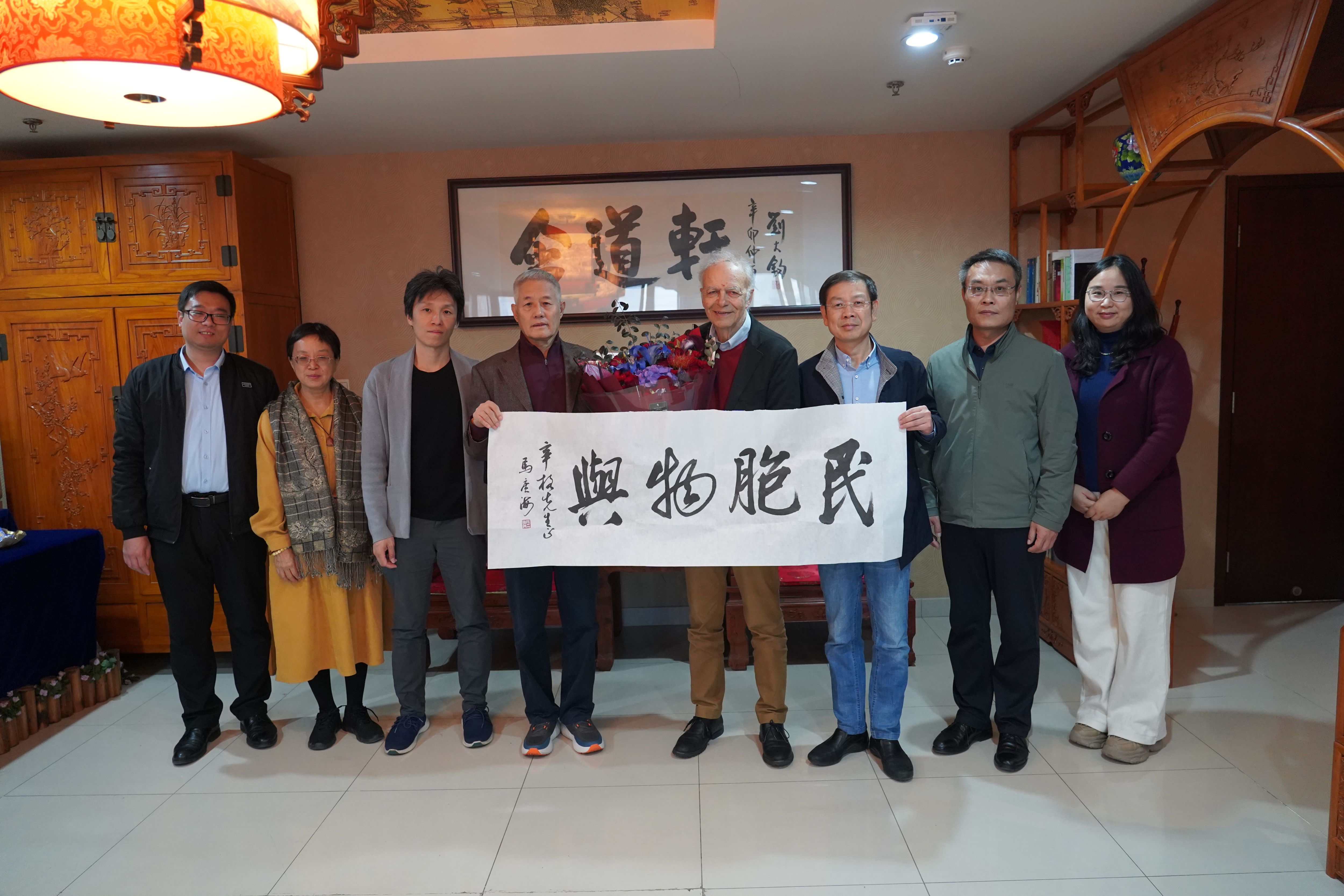 犹太与跨宗教研究中心主任傅有德教授,在知新楼含道轩与彼得·辛格教授进行了亲切交流,并向他赠送了马广海教授的书法作品“民胞物与”。H视频