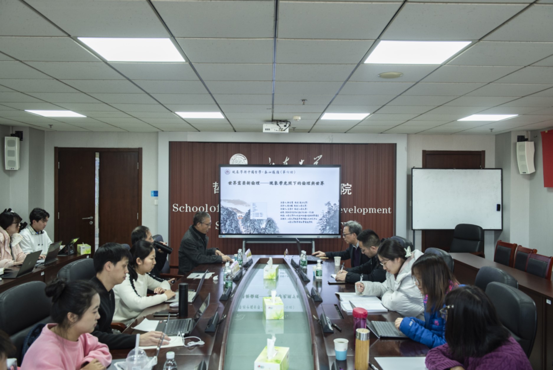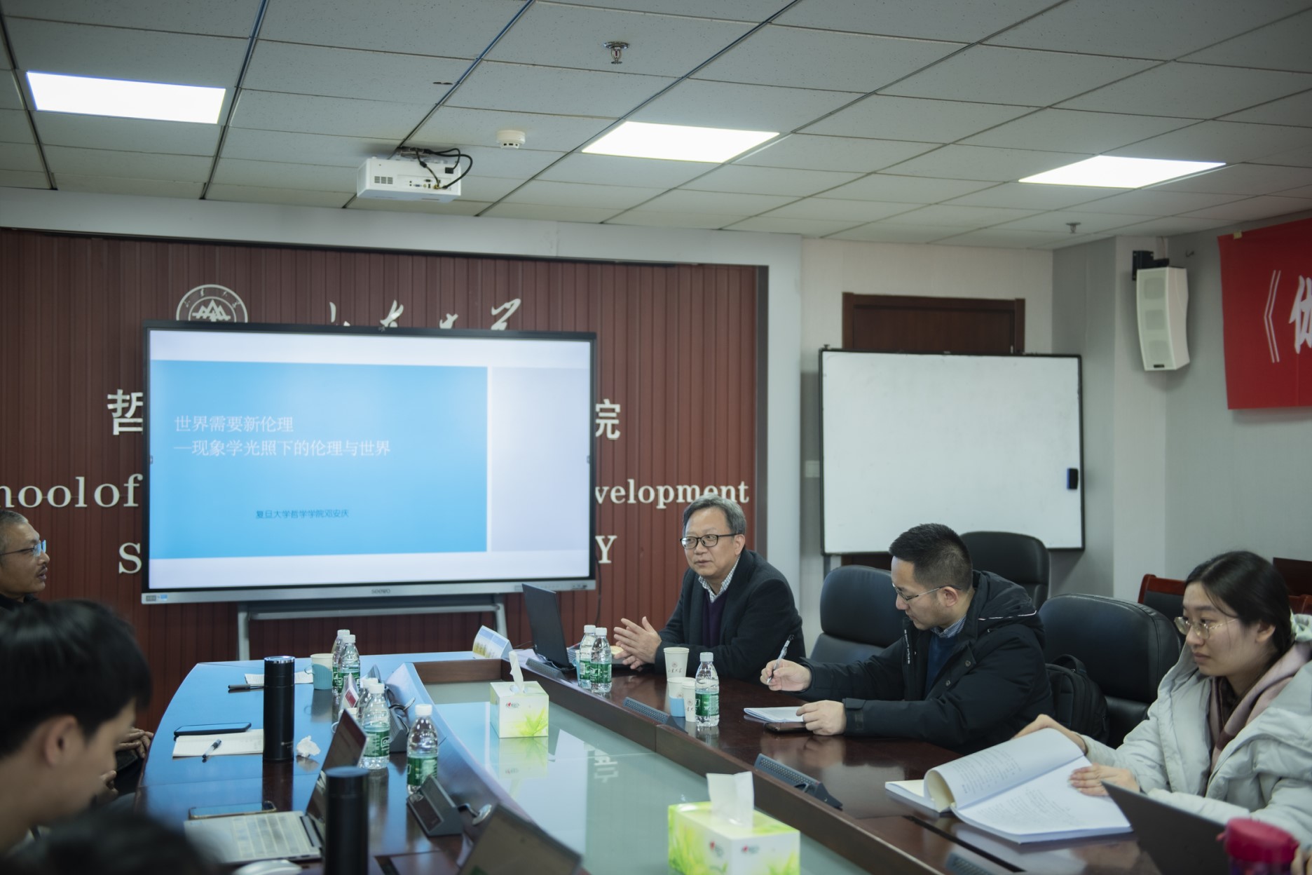 在知新楼A座1618会议室举办“现象学与中国哲学”泰山讲座(第六回)。本次讲座邀请复旦大学邓安庆教授做学术报告,报告题目是《世界需要新伦理——现象学光照下的伦理与世界》。讲座由陈治国教授主持,李章印教授担任评论人。