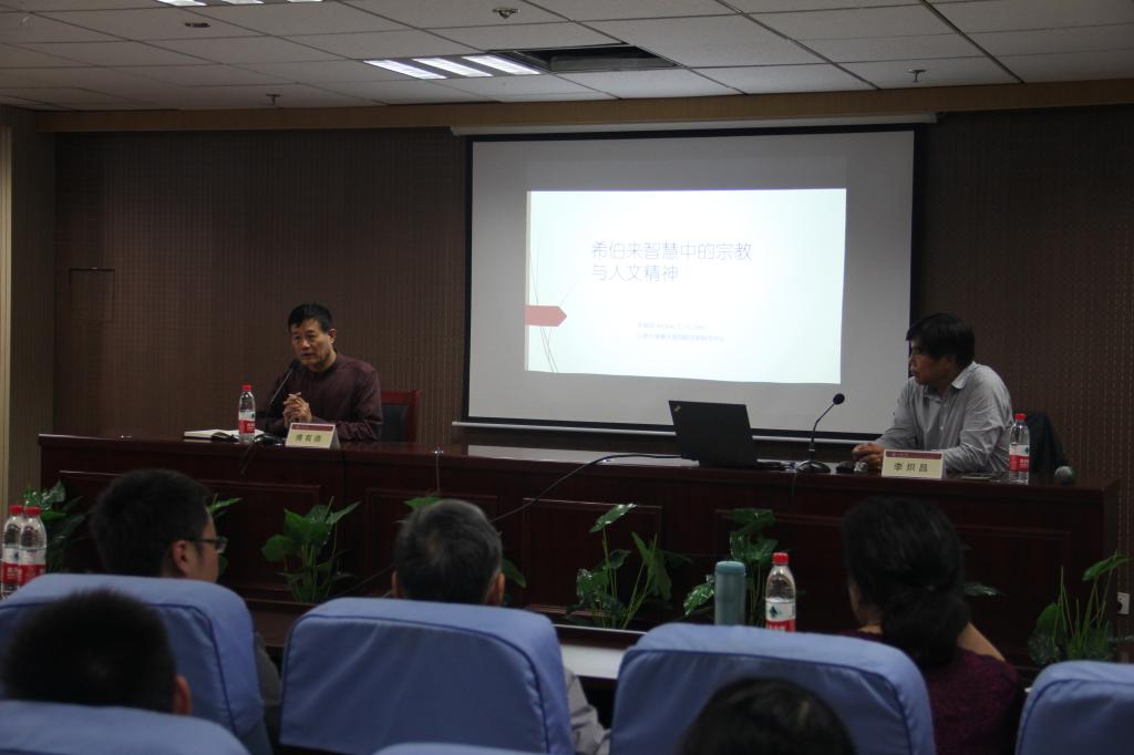 犹太教与跨宗教研究中心主任傅有德教授主持。讲座结束后,傅有德教授针对儒家传统的“敬鬼神而远之”与讲座中论及希伯来传统中“务民之义”“敬神远之”等观点与李炽昌教授就中西文化中对神人关系的不同处理进行了讨论,听众们围绕希伯来智慧与希腊智慧的比较、希伯来智慧中的公平正义问题与李炽昌教授作进一步交流。