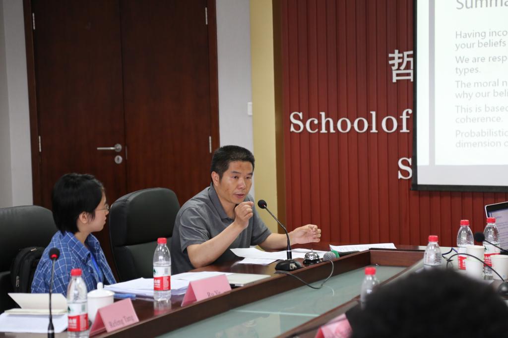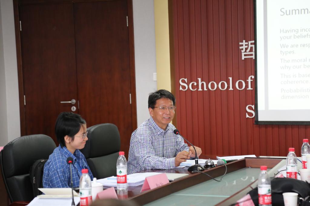 会议报告内容中西交融也是本次会议的一个重要特色。将古典中国哲学中的伦理学与认识论智慧用英美分析哲学的风格阐述出来,具有高度启发性。南京师范大学陈真教授运用西方哲学中的分析方法讨论阳明心学中的道德理论,论证了王阳明的道德理论不是主观的,而是先验的且普遍为真的。南京大学胡星铭教授运用分析哲学方法分析了庄子的一个重要论证:要成为智者就必须悬置价值判断。