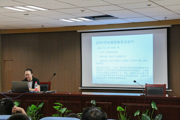 答疑环节中,现场老师和同学们积极发问,围绕感恩教育、质性研究等主题进行了讨论。期间,李淼还介绍了自己田野调查的经历和经验。质性研究的魅力在于其不拘泥于一成不变的研究预设,有机会不断突破已有的研究框架,发现新问题和新现象。在开展田野调查时,研究者会遇到种种无法预知的困难,解决困难的方法在于与研究参与者真诚地相处、力争建立融洽的研究关系。