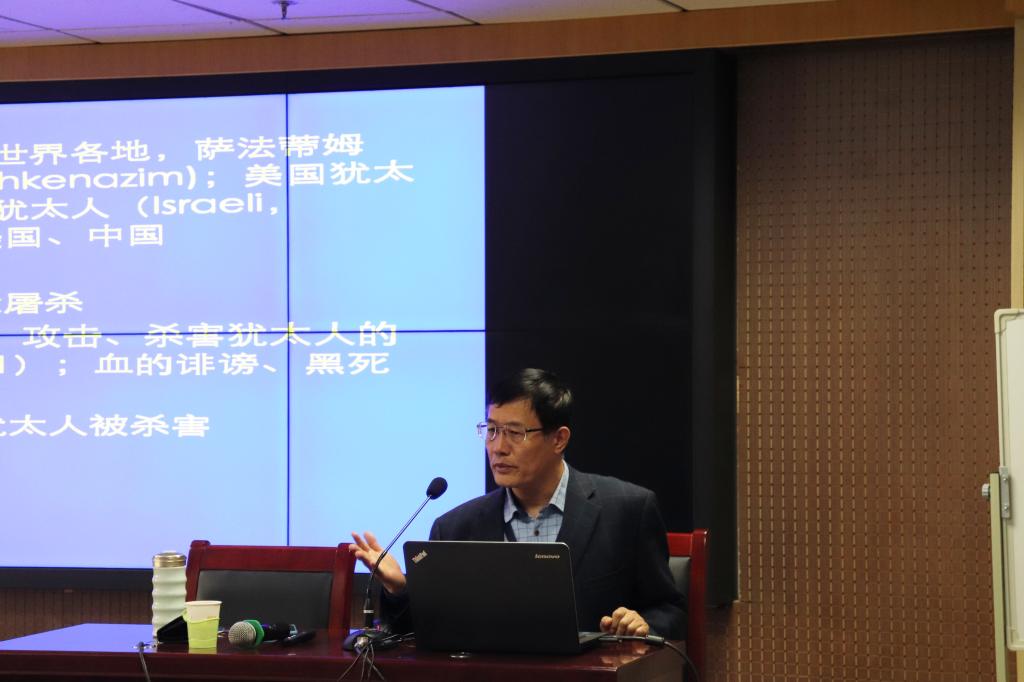 宗教学系主任、教育部“长江学者”特聘教授傅有德以“犹太人及其精神”为题作了专题讲座。