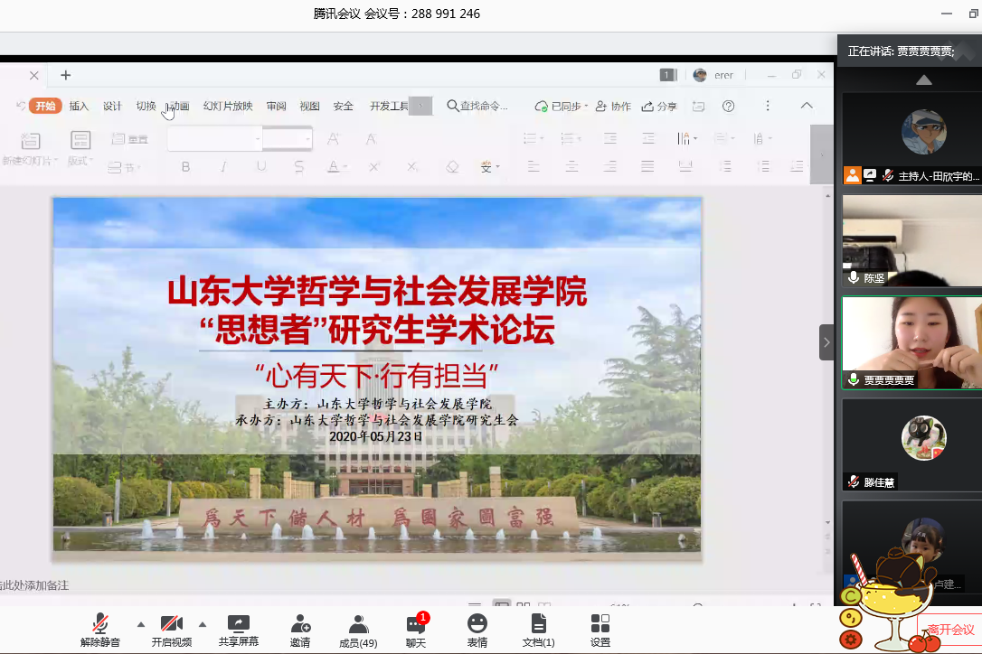 开幕式上,陈坚教授、李永卫老师及参会学生代表分别致辞。陈坚教授首先对同学们的到来表示欢迎。他指出研究生学术训练是十分重要的,研讨会是方法的训练,其对学术水平的提高有重大帮助;论坛主题有其重要的现实意义,因为疫情原因,我们采用网上论坛的方式,得益于科技发展,我们仍旧有“天涯若比邻”的感觉。李永卫老师针对论坛主题、内容和形式进行了发言,强调了学生社会担当、学术交流的意义。