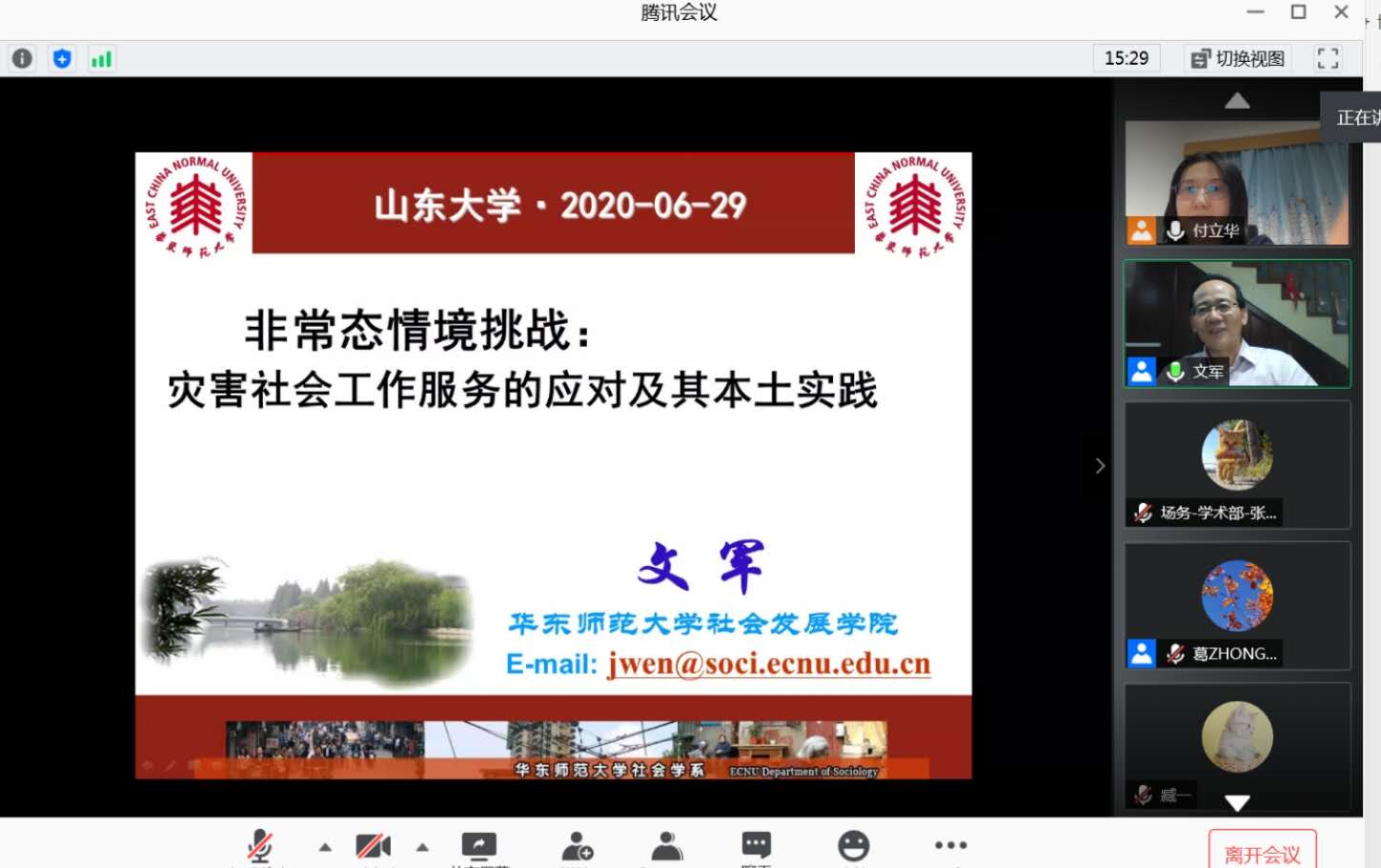 朱雀专家线上讲座,作了题为“非常态情境的挑战:灾害社会工作服务的应对及其本土实践”的学术报告。H视频