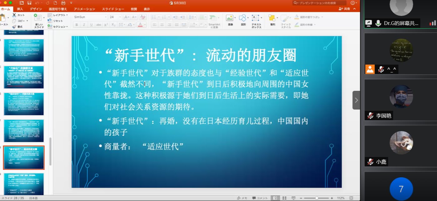 助理研究员、硕士生导师胡源源做客哲社文化周系列讲座,带来一场题为“结婚移民日本的中国女性的社会关系”的讲座。讲座通过线上会议的形式举办,H视频