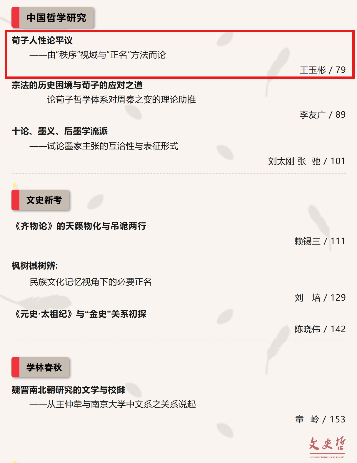 王玉彬教授在《文史哲》2024年第4期上发表了题为《荀子人性论平议——由“秩序”视域与“正名”方法而论》的高质量论文。