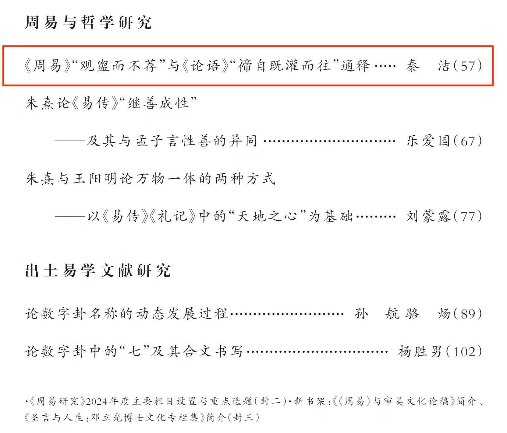 易学与中国古代哲学研究中心助理研究员秦洁在《周易研究》2024年第5期上发表了题为《<周易>“观盥而不荐”与<论语>“禘自既灌而往”通释》的高质量论文。