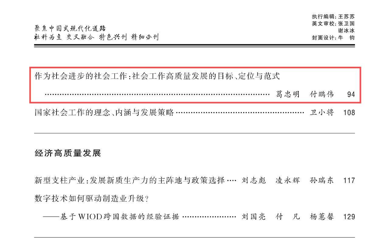 学报(哲学社会科学版)》2024年第6期上发表了题为《作为社会进步的社会工作:社会工作高质量发展的目标、定位与范式》的高质量论文。