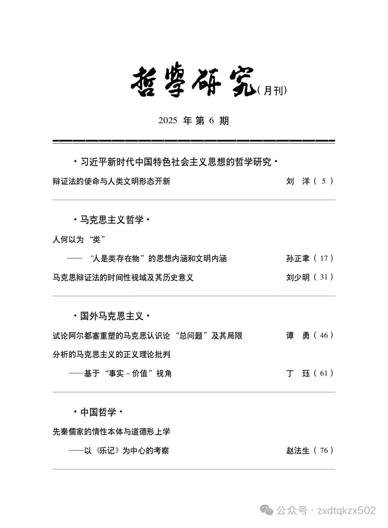 赵法生教授在《哲学研究》2025年第6期上发表了题为《先秦儒家的情性本体与道德形上学-以<乐记>为中心的考察》的高质量论文。