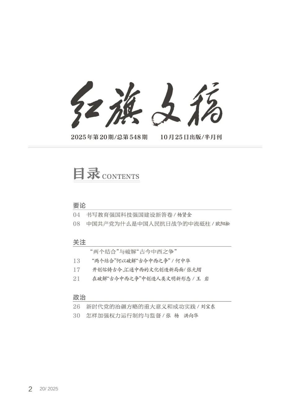 哲学系何中华教授在《红旗文稿》2025年第20期上发表了题为《“两个结合”何以破解“古今中西之争”》的高质量论文。