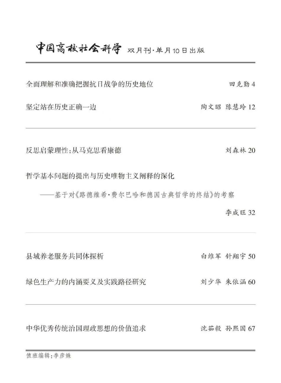 刘森林教授在《中国高校社会科学》2025年第6期上发表了题为《反思启蒙理性:从马克思看康德》的高质量论文。