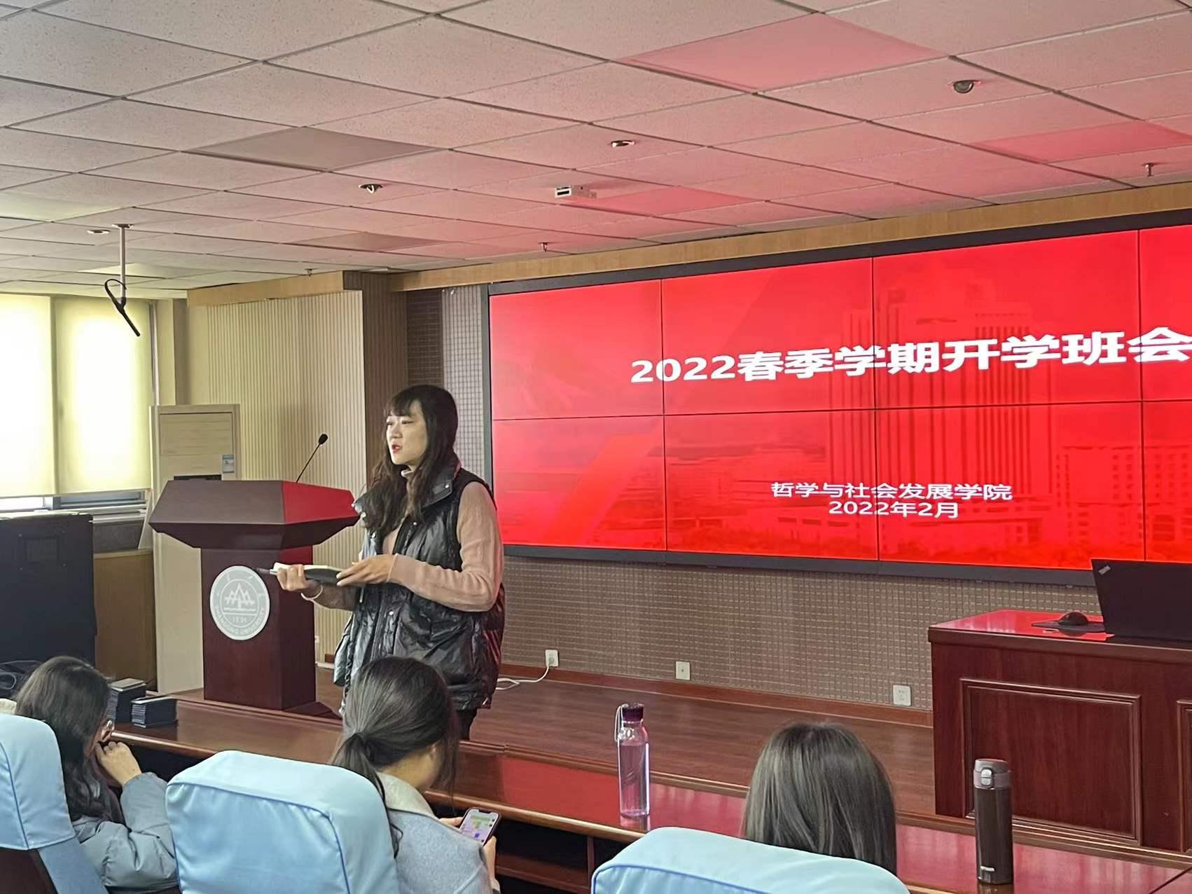 团委书记、本科生辅导员班梦姣分别于2022年2月21日下午四点、2月22日上午九点在知新楼A1521召开了2020级、2021级春季学期第一次班会,向同学们提出了新要求、表达了新期待。