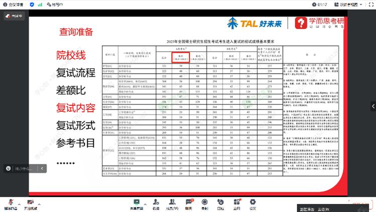 边老师解读了考研复试与调剂的相关政策,并对2025年考研复试国家线进行了科学的预测,以供同学们参考对照。以H视频