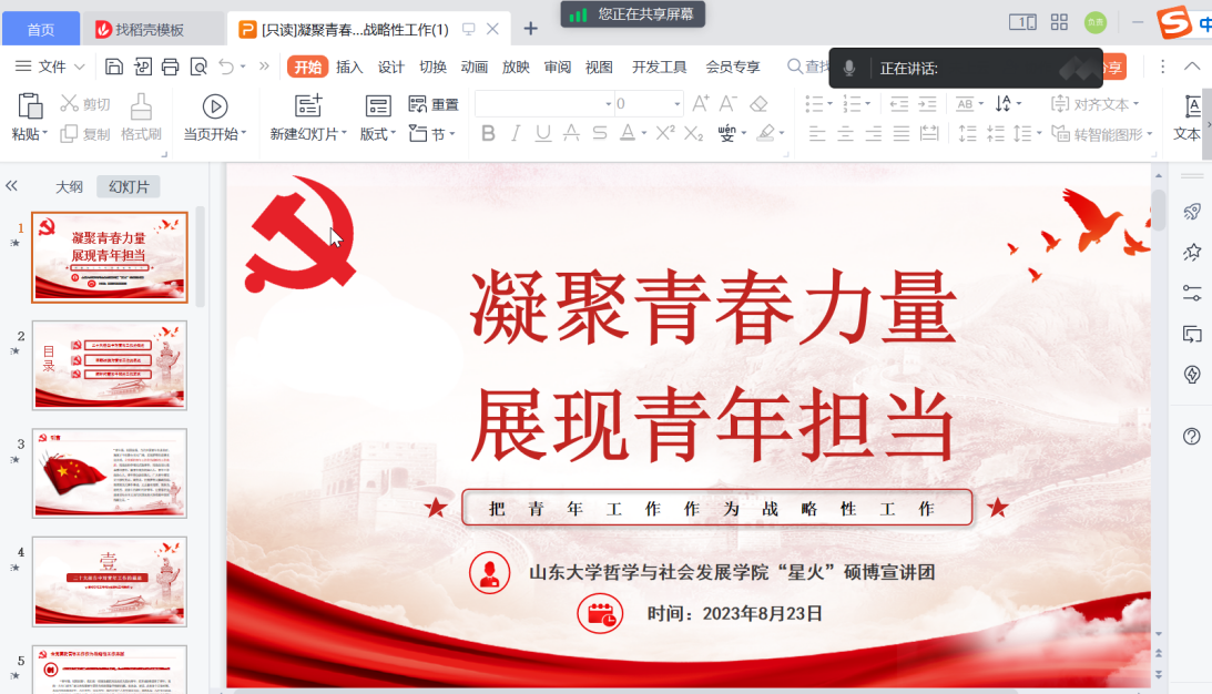 “星火”硕博宣讲团于2023年8月31日在线上进行了宣讲会,主题是《凝聚青春力量,展现青年担当》,H视频