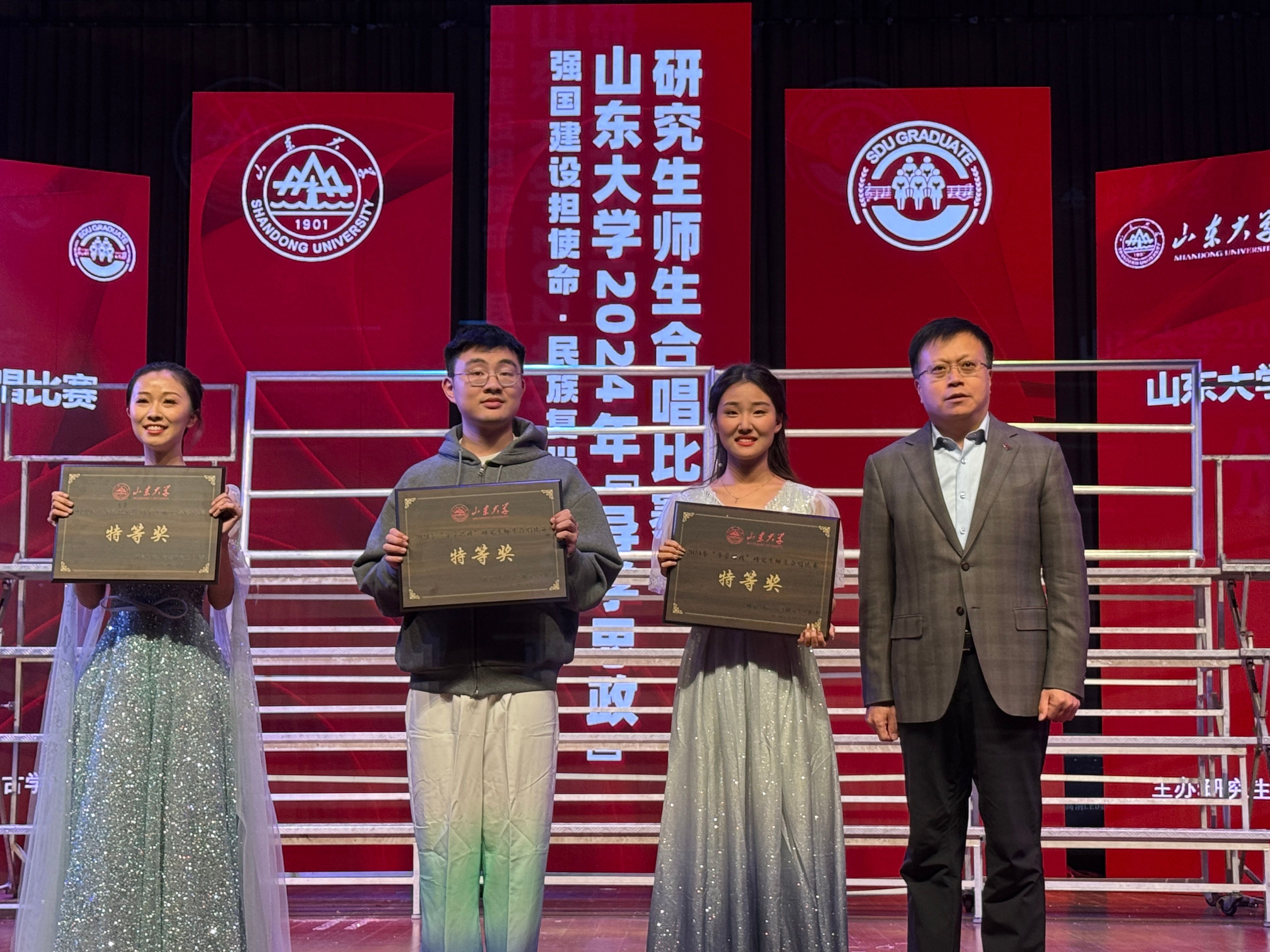 合唱团以立德树人为核心,积极促进研究生导学交流,引导学院研究生坚定理想信念,厚植家国情怀,以《音有爱》合唱曲在济南校区的28个研究生代表团队的激烈角逐中脱颖而出,以98.49分的优异成绩荣获特等奖,刘冠呈同学获最佳指挥奖。