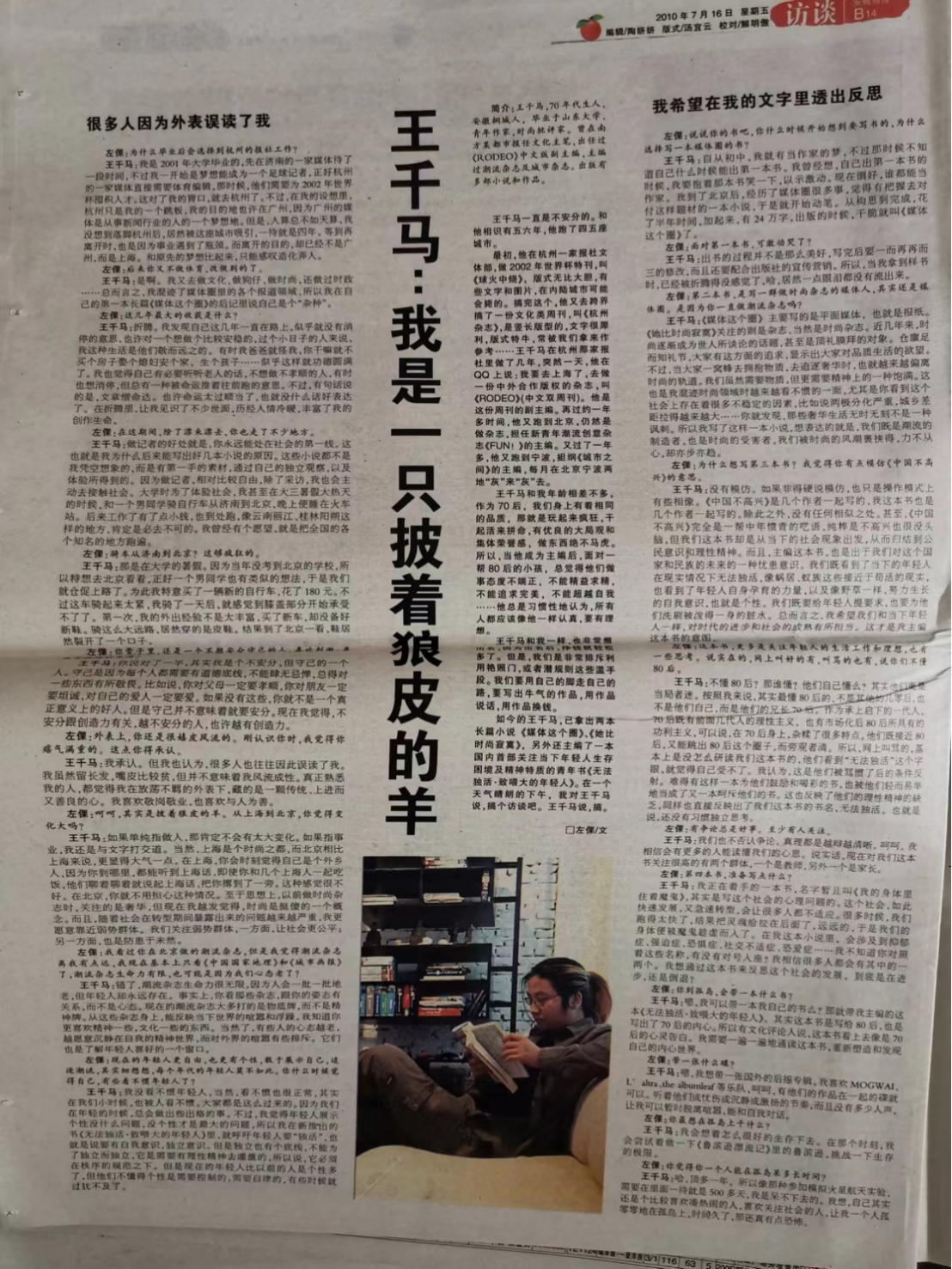 哲学社会科学校友访谈录丨王千马:在旷野中钟情文字的少年,依旧在好奇打望新世界