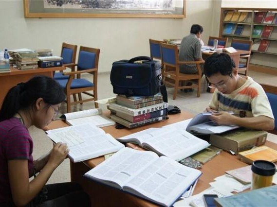 图3 2011年暑假,马永超与同学在山东省图书馆查阅资料(右一)