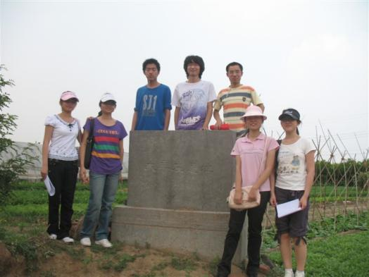 图2 2010年夏,马永超与同学们一起参观大辛庄遗址(右三)