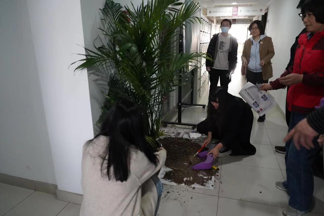 教工机关支部开展办公室增植添绿活动。