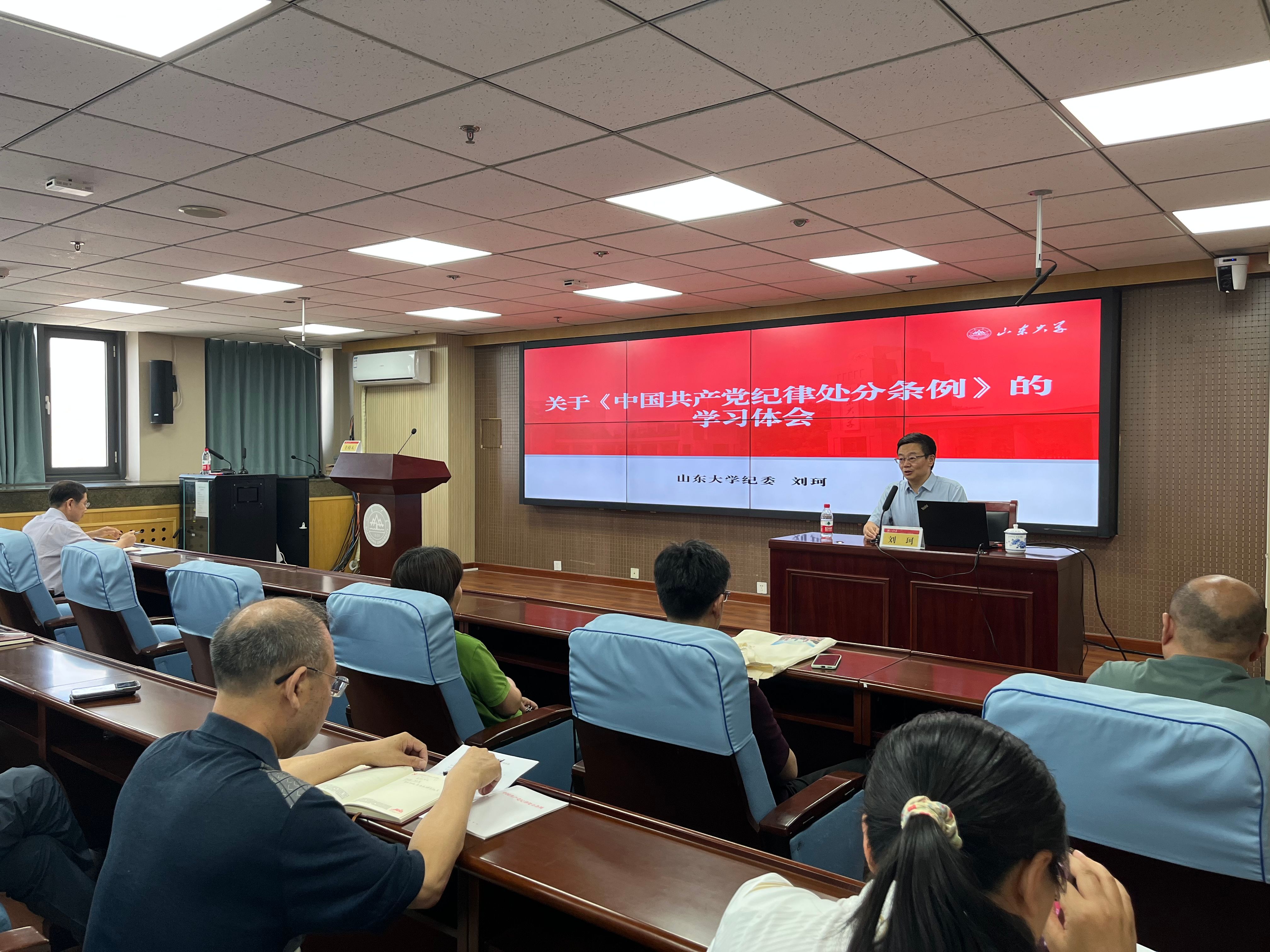 纪委副书记刘珂应邀作题为“关于《中国共产党纪律处分条例》的学习体会”的专题辅导报告。学院党委书记梅强主持报告会。学院全体教工党员、学生党员代表参加报告会。