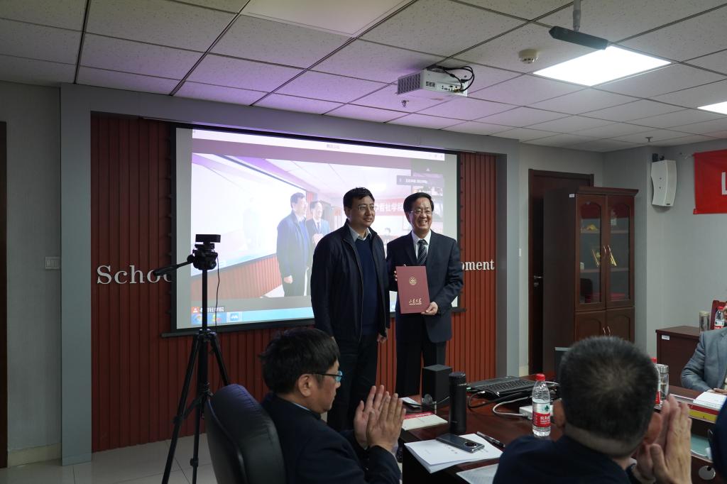 成立仪式上,邢占军、刘森林还分别代表学校、学院,向在现场参会的委员代表杨耕教授颁发了H视频