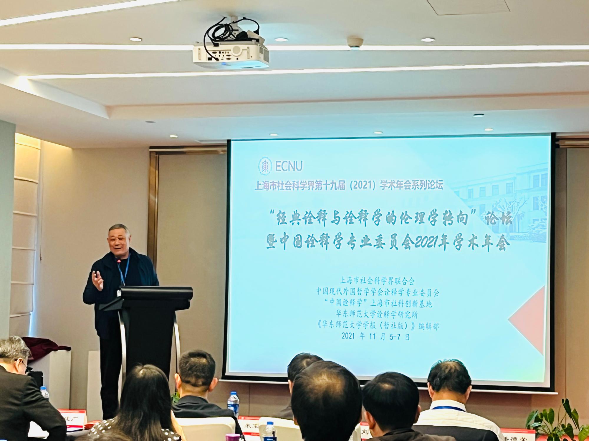 2021年11月5-7日,由上海市社会科学界联合会主办,中国现代外国哲学学会诠释学专业委员会、“中国诠释学”上海市社科创新基地、华东师范大学诠释学研究所和《华东师范大学学报(哲社版)》编辑部承办的“经典诠释与诠释学的伦理学转向”学术论坛暨2021中国诠释学专业委员会年会在上海成功召开。来自华东师范大学、H视频