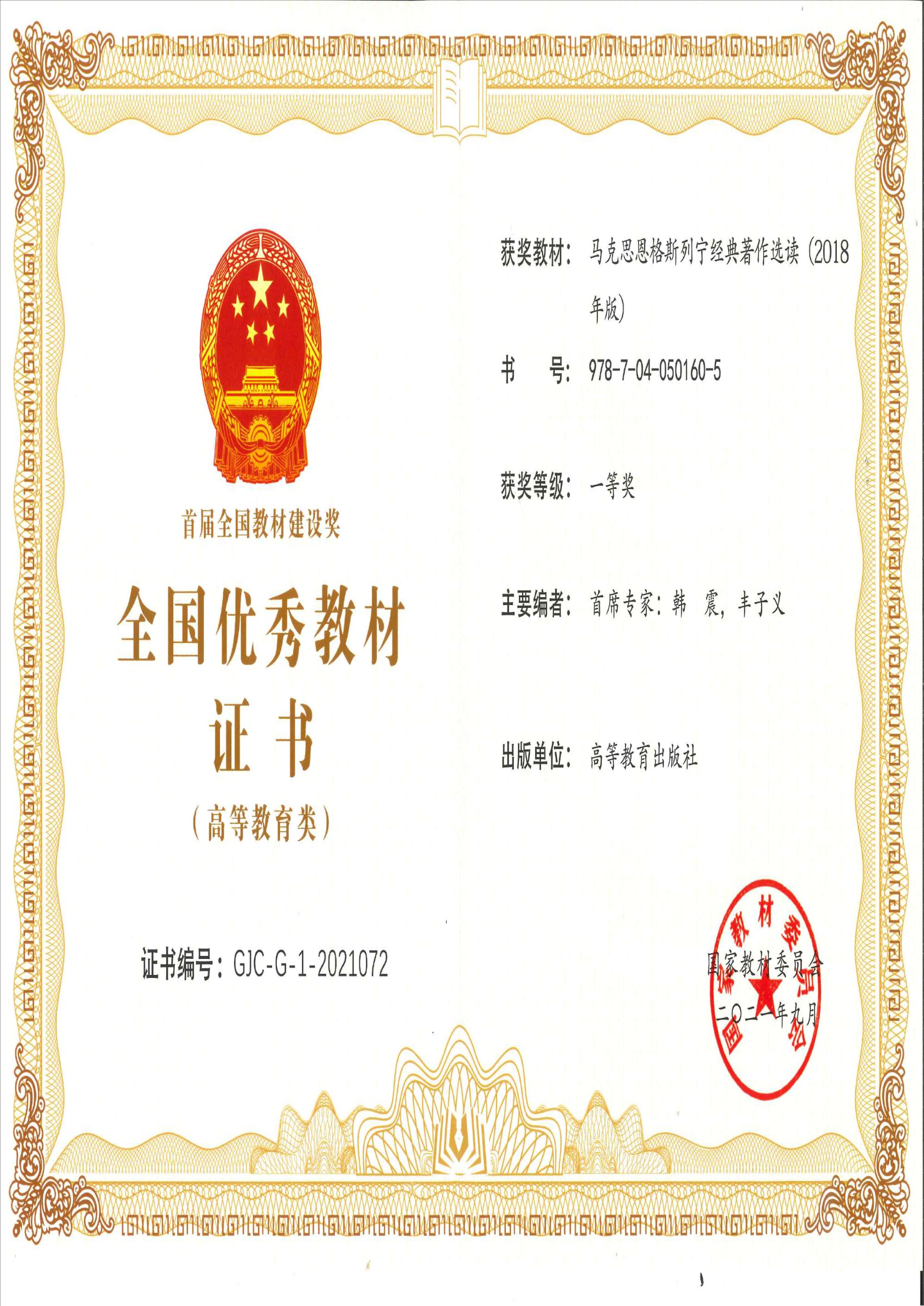 院长刘森林教授作为主要成员编写的“马工程”教材《马克思恩格斯列宁经典著作选读》荣获首届国家教材建设奖一等奖。