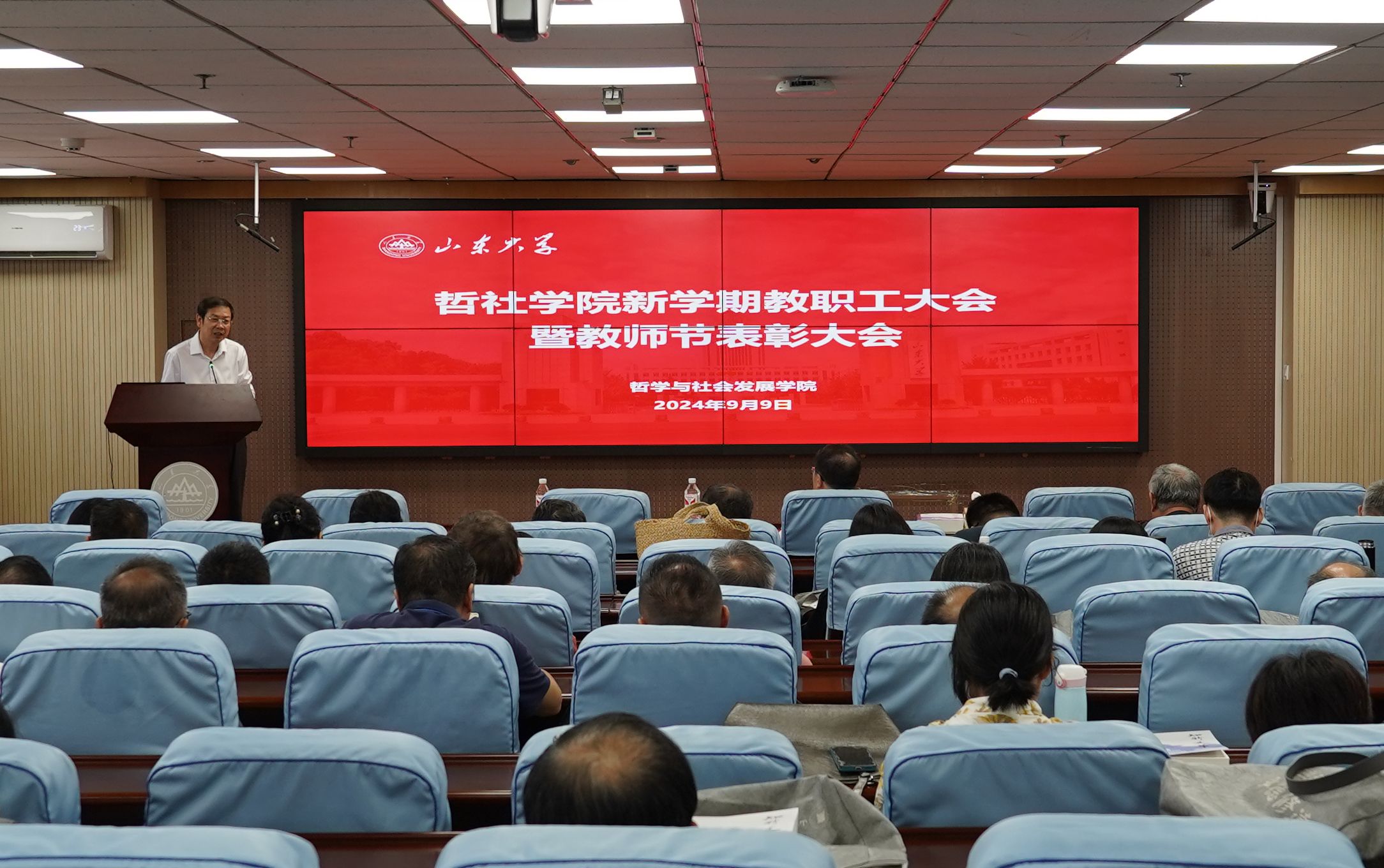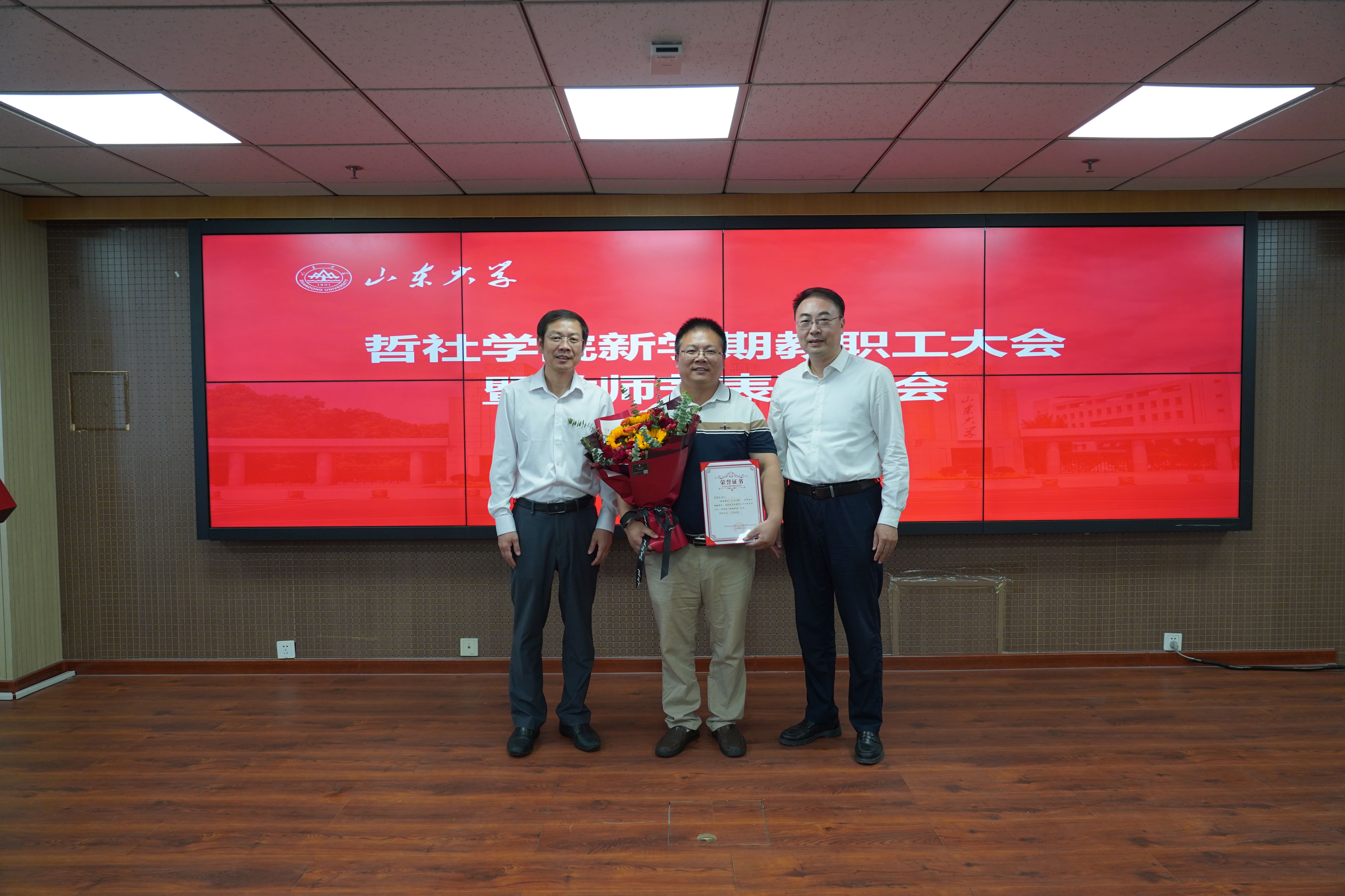 会议最后,曲明军在总结讲话中充分肯定了学院取得的工作成绩,对获奖教师表达了衷心祝福。他强调,全体教职员工要在学院党委正确领导下,在学院领导班子的团结带领下,进一步提高思想认识和政治站位,将推动各项事业发展与深入学习贯彻党的二十届三中全会精神紧密结合起来,与深入学习贯彻正在召开的全国教育大会精神紧密结合起来,与深入学习贯彻学校第十五次党代会精神紧密结合起来,以“闯”“创”“干”的昂扬姿态,锚定学校党委制定的“一五七九”发展思路,用好改革“关键一招”,强化管理服务保障,不断推动学科水平和学院综合实力持续提升,奋力书写“强国建设,山大何为”的哲社篇章,为推动具有中国特色、中国风格、中国气派的哲学社会科学高质量发展做出应有的贡献。