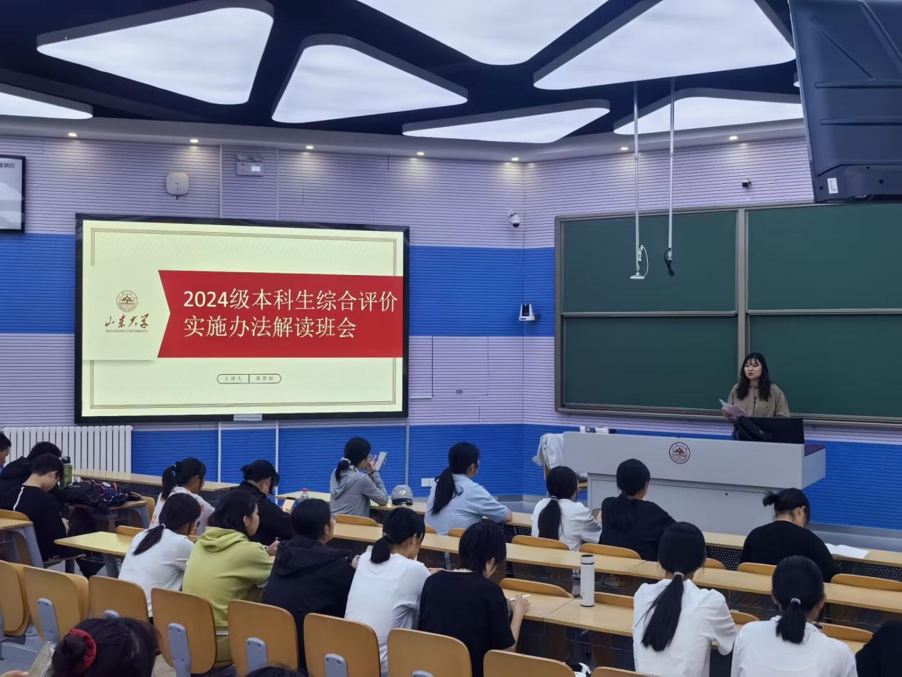 于2024年9月26日下午在董明珠楼110举行了以“全面解读,共促发展”为主题的本科生综合评价实施办法解读班会。本次班会由辅导员班梦姣主持,全体24级H视频