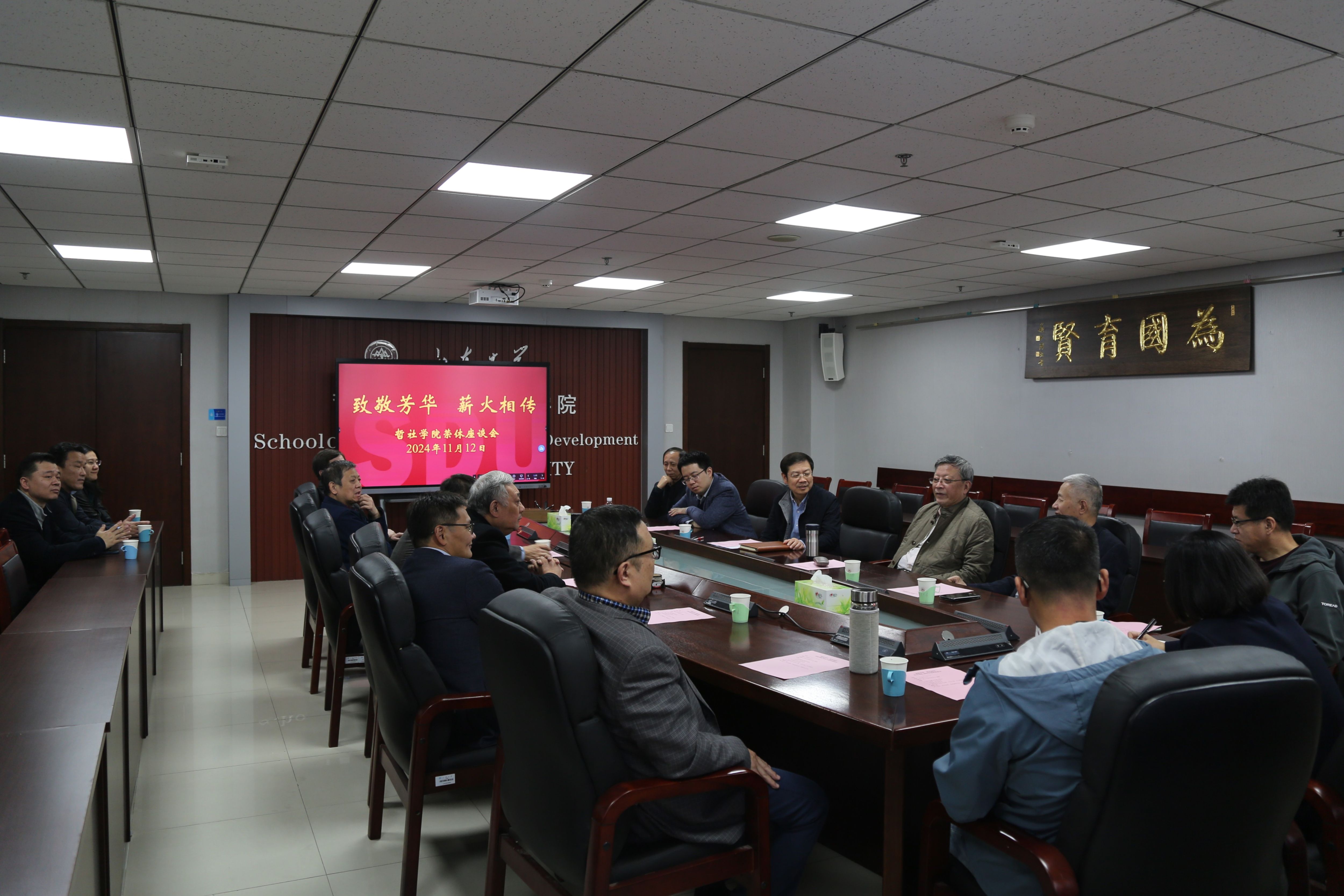 座谈会上,与会老师共同追忆、畅谈与刘陆鹏老师的同窗和同事情谊。大家兴致盎然,回忆往昔岁月相处的难忘时刻与轶事,不时传来欢快的笑声和掌声。在热烈氛围中倾诉不舍之情,寄予真切祝福。刘陆鹏老师回忆了工作中的难忘经历,表达了对学院关怀的衷心感谢和对学院事业发展的美好祝愿,以及对青年教师的谆谆嘱托,激励大家努力拼搏,勇创佳绩。青年教师表示要学习传承好老教师爱岗敬业、乐教爱生、知行合一、甘于奉献的优秀品格,当好学生成长成才的引路人,争做新时代“四有”好老师。整个交流会场散发出教育的情怀、哲学的智慧和人性的光辉。