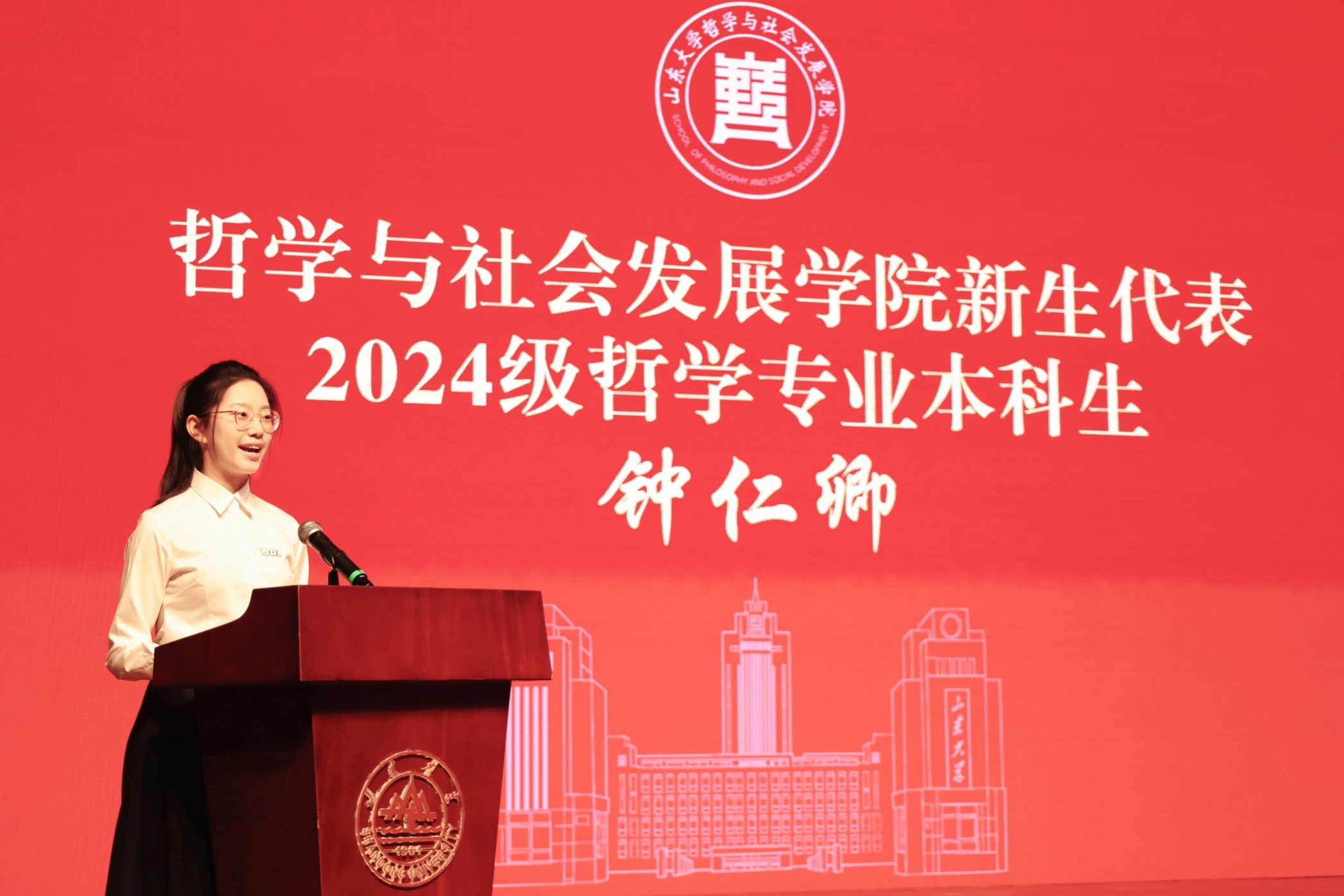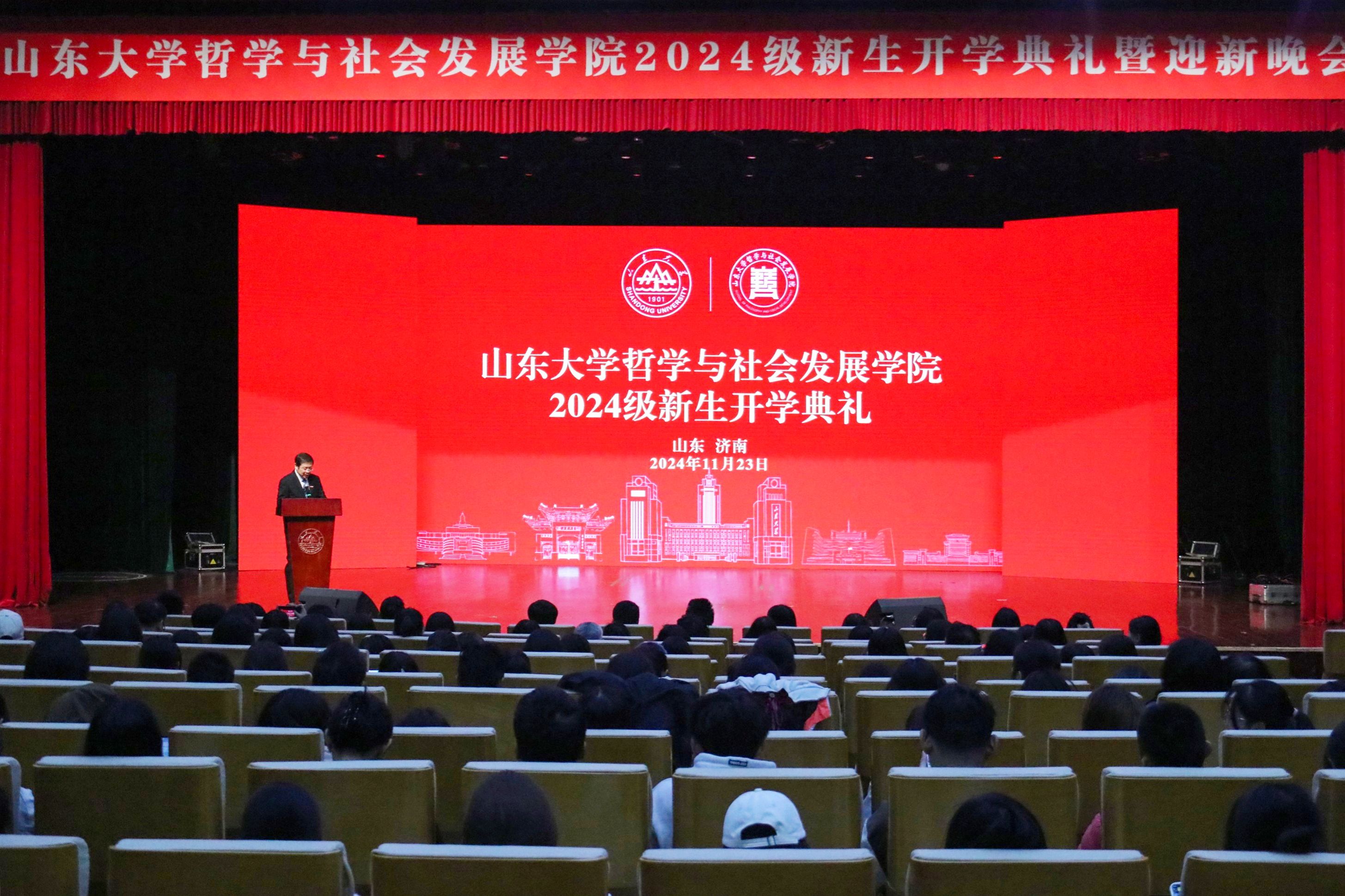 的发展历程与学科建设,他立足时代发展,从修德立志,以大胸怀融入新时代;求知创造,以硬实力做出新奉献;乐观坚韧,以好心态迎接新挑战三个方面为大家即将开启的求学旅程提出了殷切期望和谆谆教导,强调新一代青年人是推动社会进步、助力祖国建设的中流砥柱。希望同学们坚守理想信念、实现青春抱负、发挥社会价值、挺膺山大担当、展现哲社风采。
