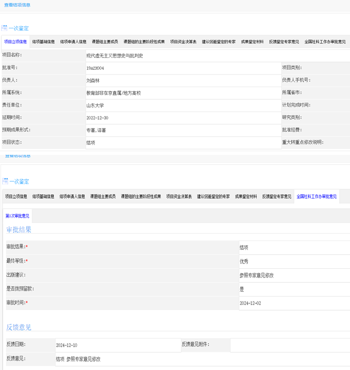 刘森林教授主持的国家社科基金重点项目《现代虚无主义思想史与批判史》(19AZX004)结项获评优秀。