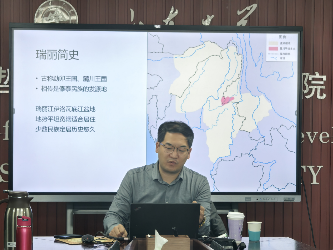 讲座伊始,游天龙介绍了该项研究的背景,简述了研究地点瑞丽市的城市化情况、地形特征和历史宗教文化背景,以及中缅边境的跨国交通条件。在综合叙述研究背景的基础上,点明应重点关注“一带一路”政策对境内前沿地区的影响。