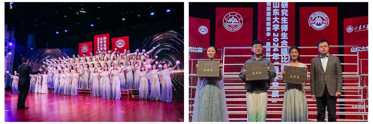 2024年“导学思政”研究生师生合唱比赛中,研究生合唱团凭借出色表现荣获特等奖和最佳指挥奖;1个团队获中国大学生知行计划全国铜奖;1个团队获中国研究生“文化中国”两创大赛国家级三等奖;获2024年度“读懂中国”微视频大赛一等奖1项,征文作品《她》入围优秀作品展播,并参加教育部关工委展播节目录制。