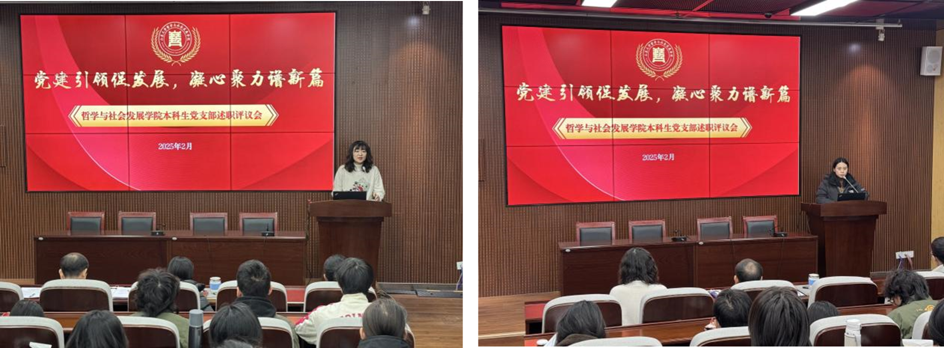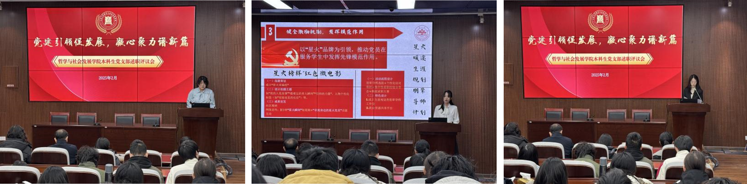 本科生第一党支部书记李斯特、支委李一凡、刘蓉、佟姜缘依次进行现场述职,其他党支部支委进行书面述职。述职以“党建引领促发展,凝心聚力谱新篇”为题,围绕完善组织建设、强化理论学习、提高工作水平、加强政治建设等方面详细汇报了工作开展情况,剖析存在的不足,并提出改进措施和工作计划。