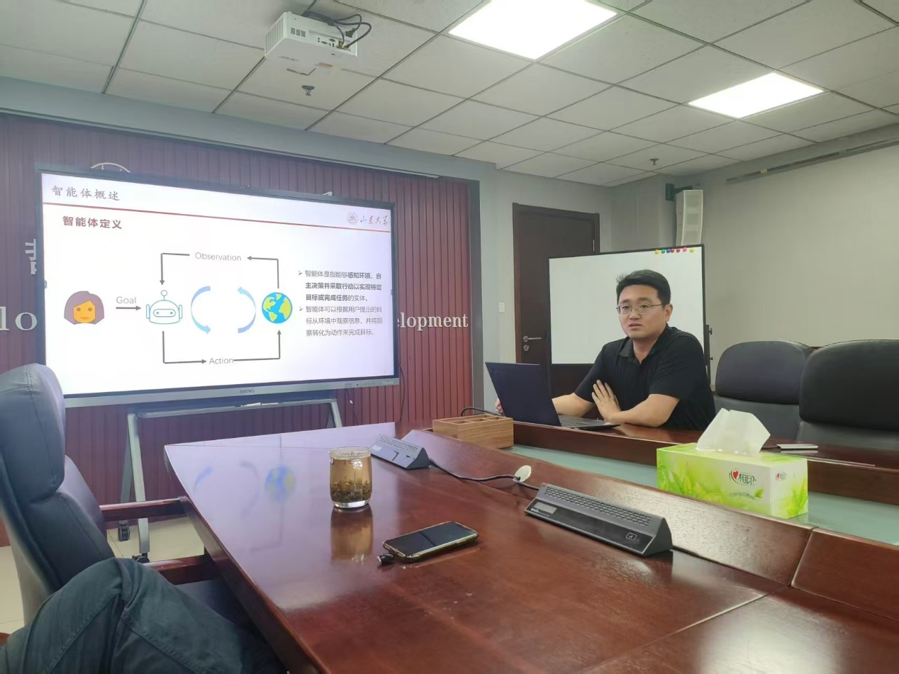 任鹏杰以“基于大语言模型的智能体”为主题作报告,孙宇清以“认知启发的智能计算”为主题作报告,博士生郑威以“规则与语义融合推理”为主题就逻辑与大语言模型融合方面的工作进行补充报告。几位学者为我院师生展示了自然语言处理领域最新的研究成果,充分体现了当前人工智能领域“理论创新驱动技术突破”的发展趋势,为人工智能下一阶段深入融合认知科学、逻辑学和语言哲学等理论成果的可能性和路径带来了深刻启示。讨论环节,现场踊跃提问,学术氛围热烈。