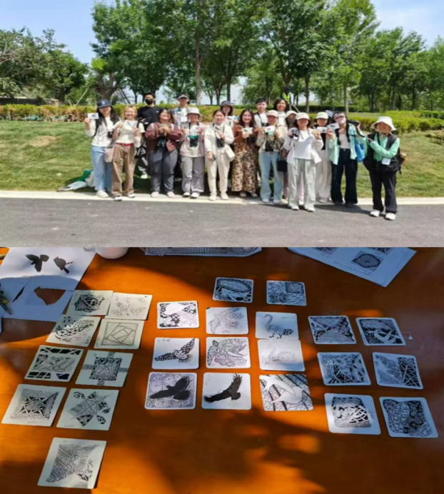 团队深入梨枣峪及周边村落,通过入户访谈和参与式观察,了解村民对金雕保护及生态政策的认知、态度和疑虑。针对部分村民对保护与发展平衡的担忧,团队发挥专业优势,将生态保护知识、法规与村民生计发展议题相结合,讲述金雕故事、展示监测成果,凝聚 “守护共同家园” 的社区共识。同时,团队注重提升自身生态文明素养与自然教育能力,通过系统研读相关文献,学习优秀鸟类保护教育方案,在校园内反复试课、实践观测技巧、识别校园鸟类,前往华山湖湿地公园研习湿地水鸟识别与行为,探索自然艺术融入教育的方法。这些研习与试课,为面向社区和公众开展自然教育活动奠定了基础。