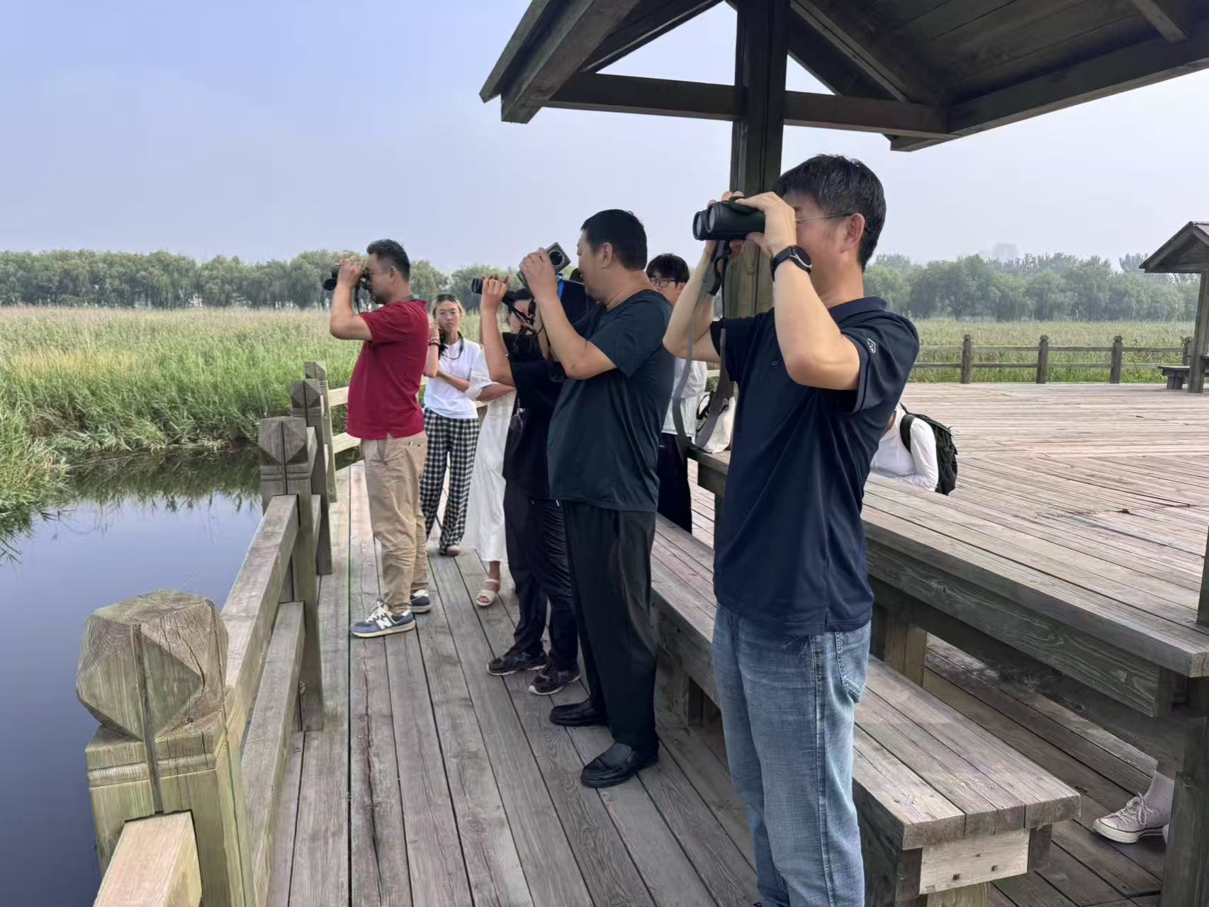 7月10日,师生团队前往桑沟湾湿地与樱花湖开展鸟类观测,随后前往荣成市自然资源局林业发展中心开展座谈交流。荣成市自然资源局党组副书记王洪阳向师生团队介绍了荣成自然资源概况,并表示希望加强与H视频