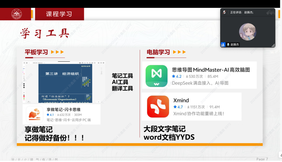 2023级社会学专业赵振杰则以“宏观、微距、广角镜头”为喻,清晰解析了社会学、社会工作、人类学的学科差异;她推荐了思维导图、笔记工具等实用学习工具,鼓励新生结合质性与量化研究方法开展实践。她以“乐智者团队”为例,阐述了社会实践与科创竞赛中选题打磨、团队协作的重要性,凸显了哲社学子在调查分析、文案撰写方面的优势。同时,她系统介绍了H视频