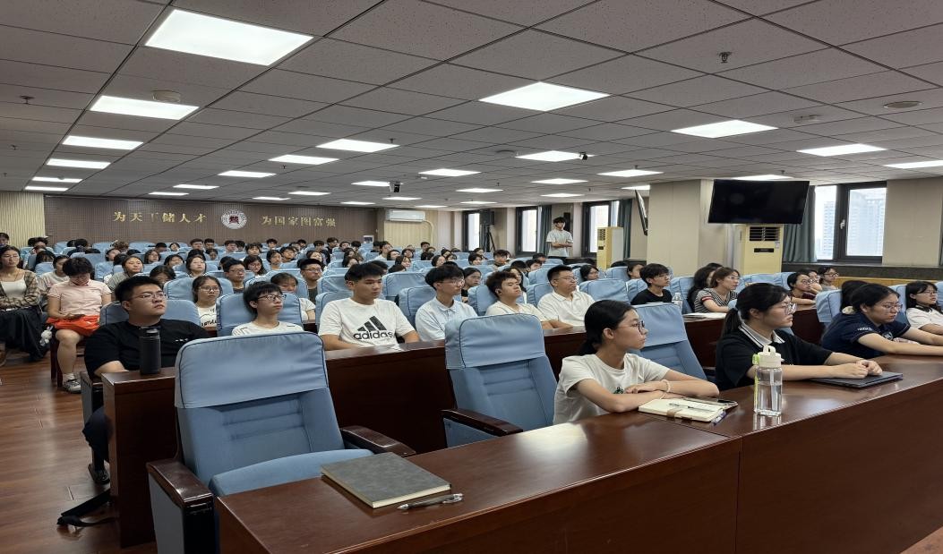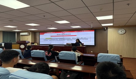 于知新楼A1521会议室开展新生入学教育系列团课,围绕宿舍管理与生活适应主题,由学院学生会生活权益部部长张钧博、吴祖儿主讲,2025级新生全员参与。