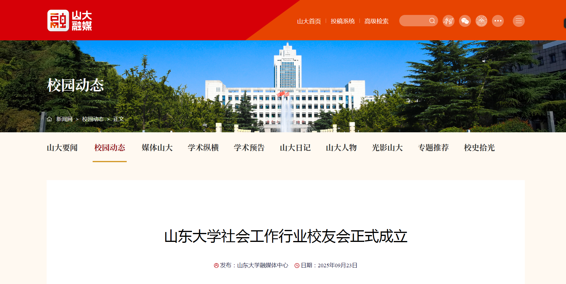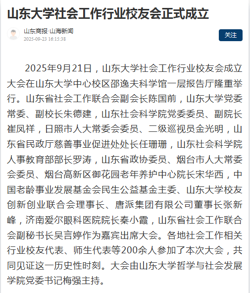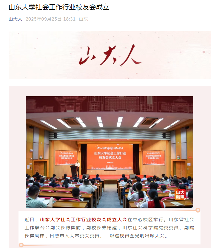 山大人微信公众号 报道H视频 社会工作行业校友会成立