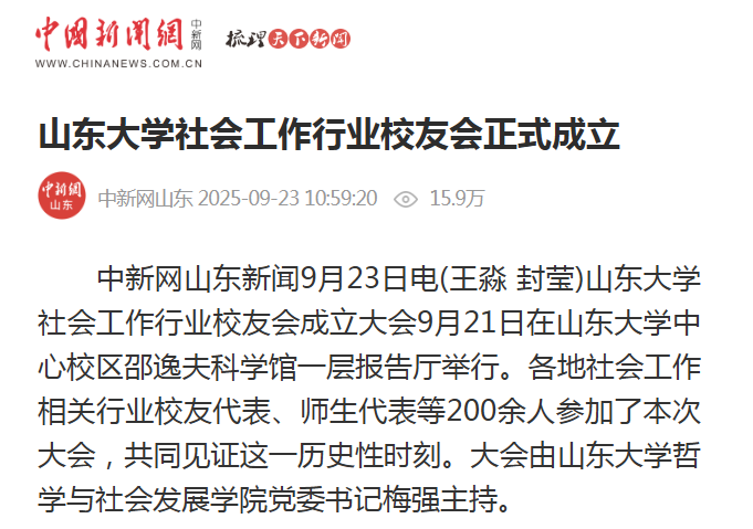 中国新闻网 报道H视频 社会工作行业校友会正式成立
