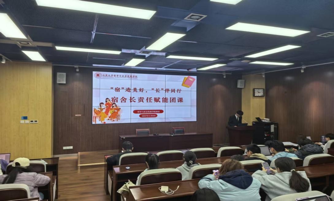 在知新楼A0115会议室举办“‘宿’造美好,‘长’伴同行——宿舍长责任赋能团课”。学院团委书记、辅导员班梦姣,学生会生活权益部及社管会相关负责人,全体宿舍长参与活动。活动由学生会生活权益部潘明洋主持。