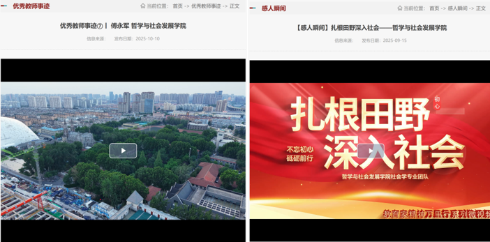 树典立范强导向,凝聚奋进力量。健全师德激励机制,在学院教职工大会上评选表彰“年度贡献奖”“年度卓越奖”等荣誉获得者,创办“师者风范”“哲社风华录”等访谈专栏,广泛宣传优秀教师事迹,以身边榜样引领教师见贤思齐。创新宣传形式,拍摄傅永军教授优秀教师事迹、社会学专业团队、《引领-我和我的支部》等宣传片,生动展现教师精神风貌,进一步激发全体教师的荣誉感、责任感与使命感,营造崇尚先进、学习先进、争当先进的浓厚氛围。编写H视频